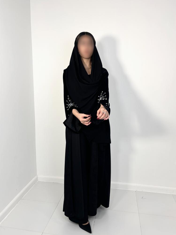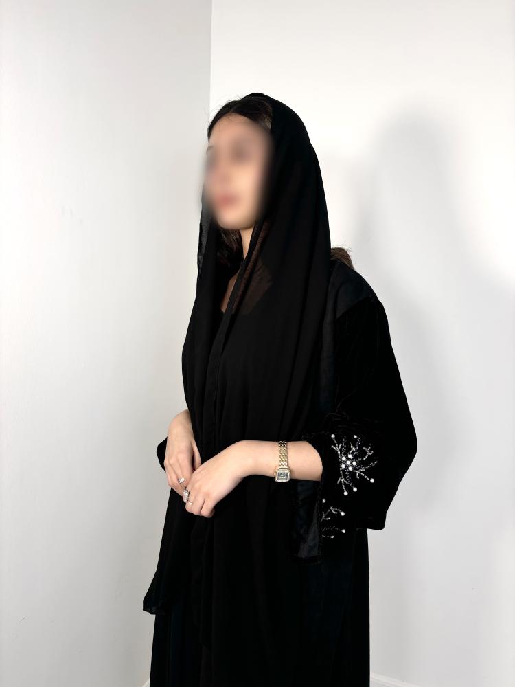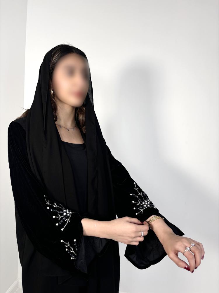 عبايات مناسبات فخمة للشتاء المصنوعة من قماش الشامواه مع الأكمام المخمل المطرزة بالخرز توفر لك إطلالة دافئة وأنيقة خلال فصل الشتاء و تصميمها الفاخر يجعلها الخيار المثالي للمناسبات الخاصة فاحصلي عليها الان من متجرنا byadir-abaya