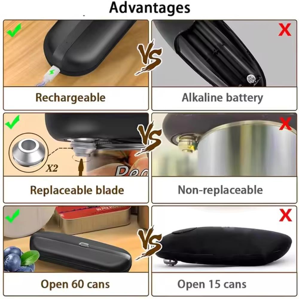الفتاحة الكهربائية القابلة لإعادة الشحن هي أداة مطبخ مخصصة لتسهيل فتح العلب والبرطمانات، خاصة للأشخاص الذين قد يواجهون صعوبة في استخدام الأدوات التقليدية. إليك وصفاً مفصلاً للمنتج: