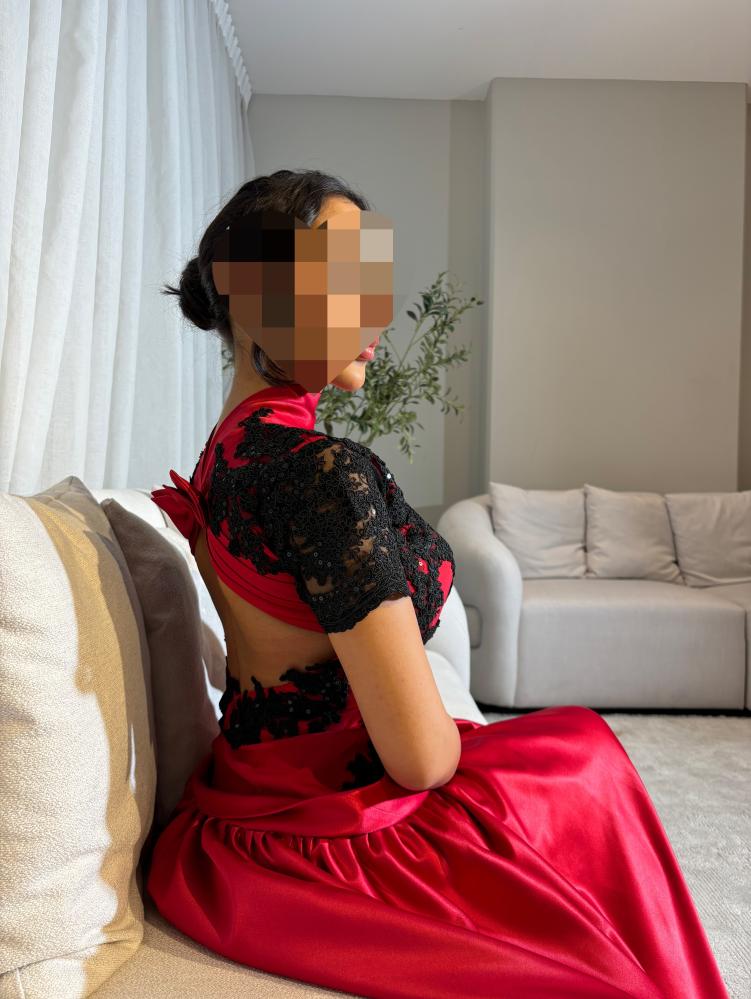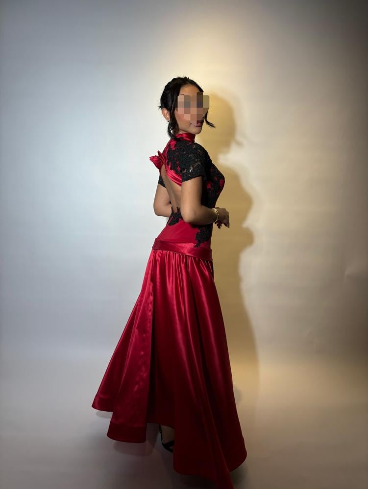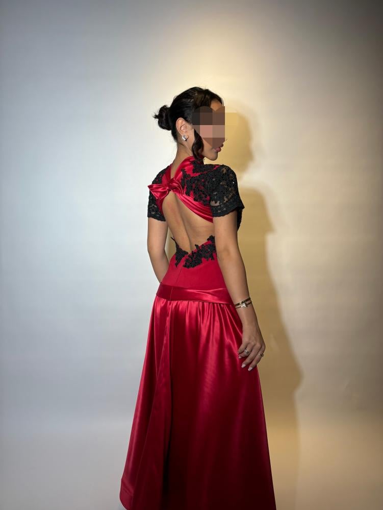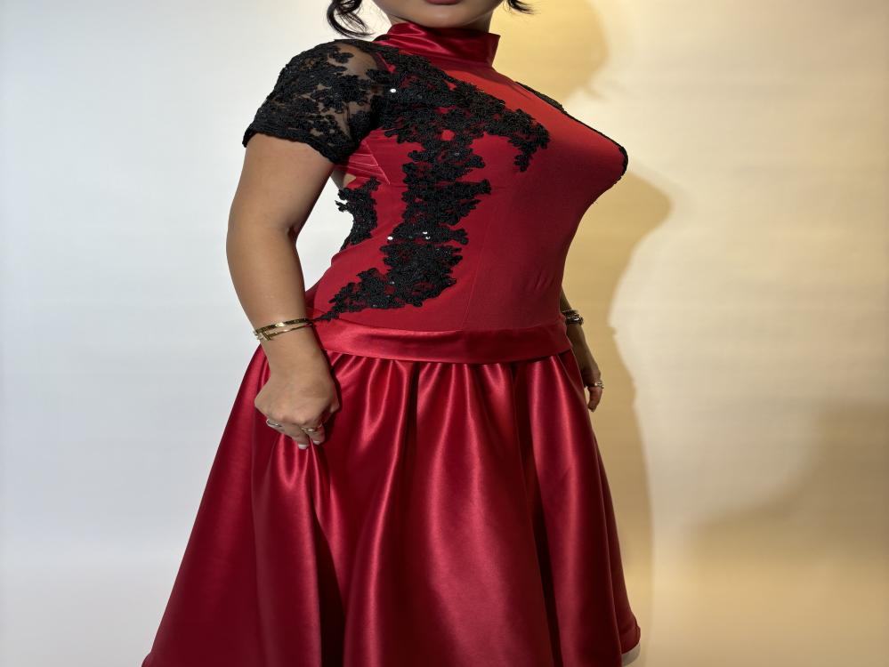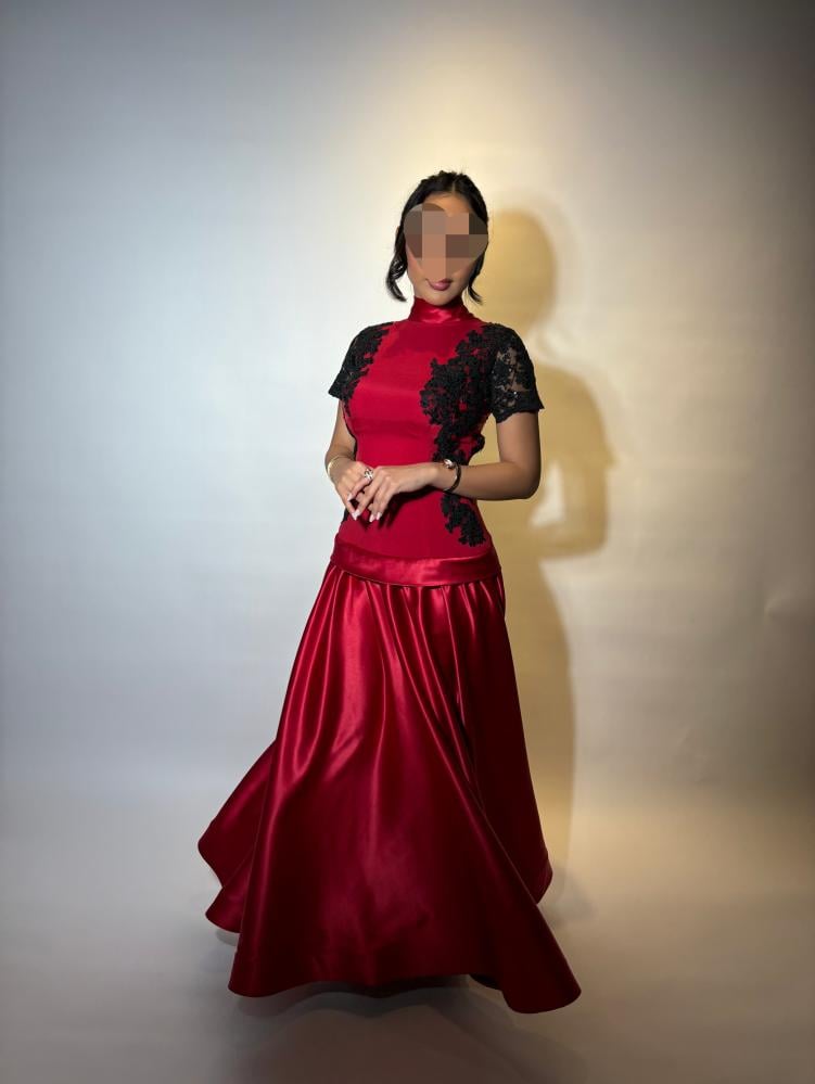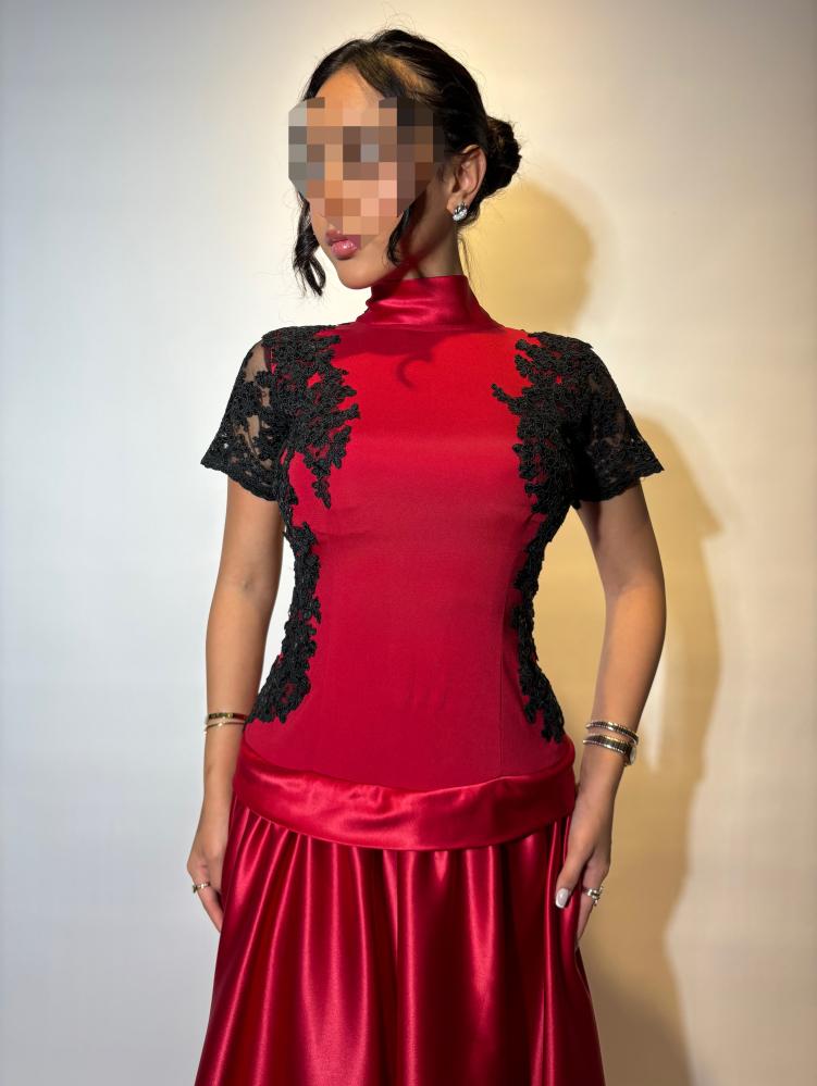 فستان قماش دانتيل اسود X قماش تفته احمر