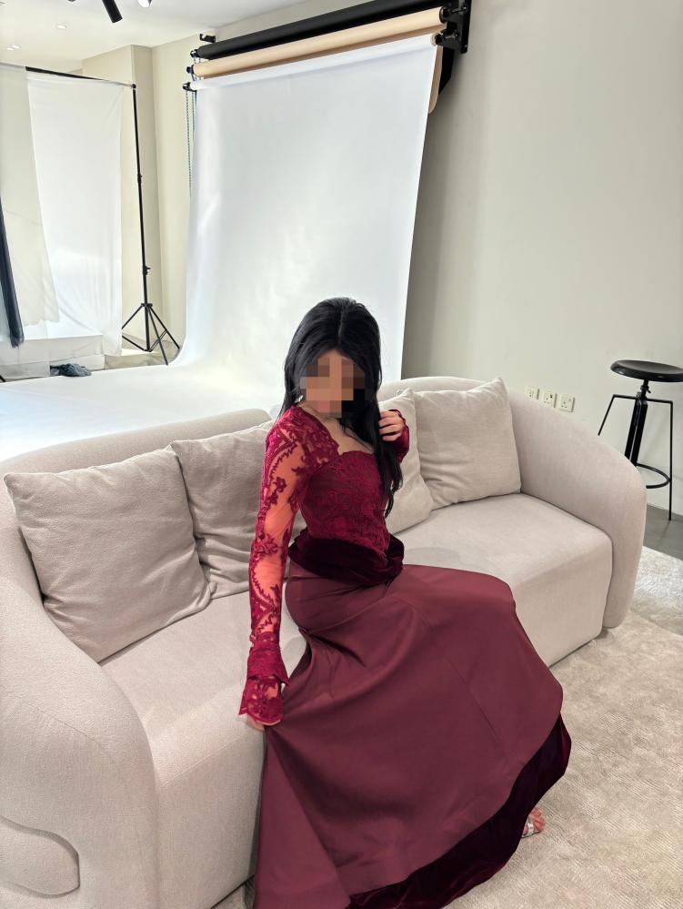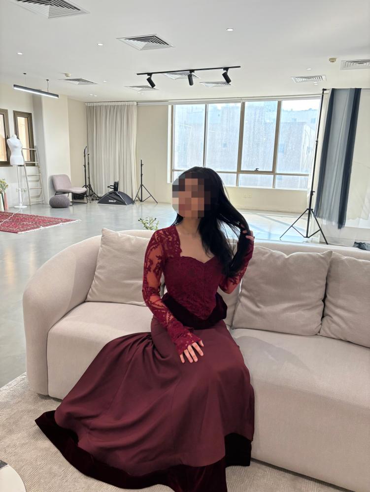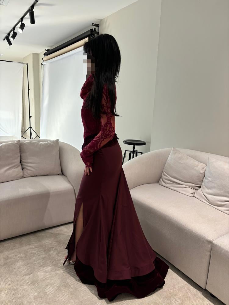 فستان مخمل عنابي - اكمام دانتيل