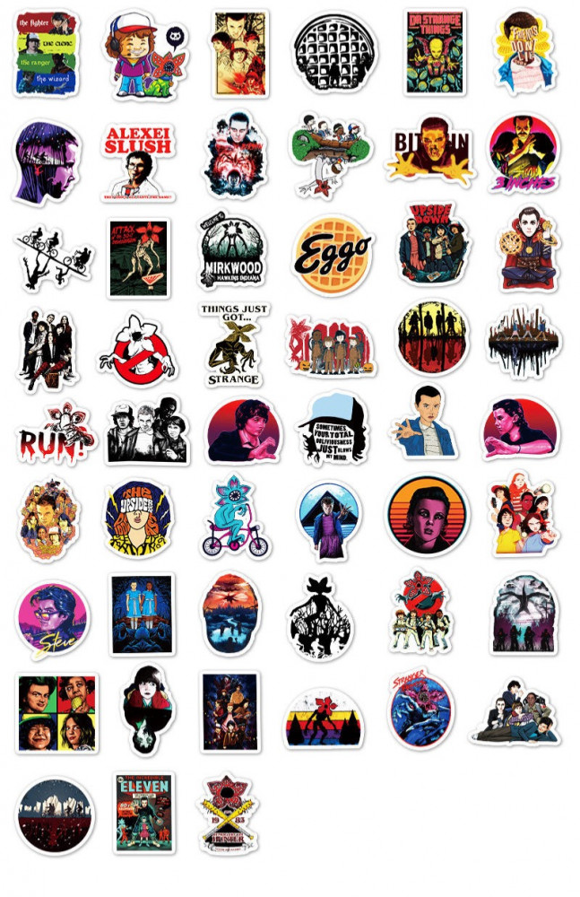 ١٧نقدم لكم ملصقات المسلسل الامريكي الشهير سترينجر ثينقز ، وعدد الملصقات 51 ملصق متنوعة ومختلفه وليست متكررة . 51 ملصق مميزه ورائعة عن مسلسل سترينجر ثينقز تمتع في جعل حياتك اكثر اثارة في وضع تلك الملصقات على ممتلكاتك