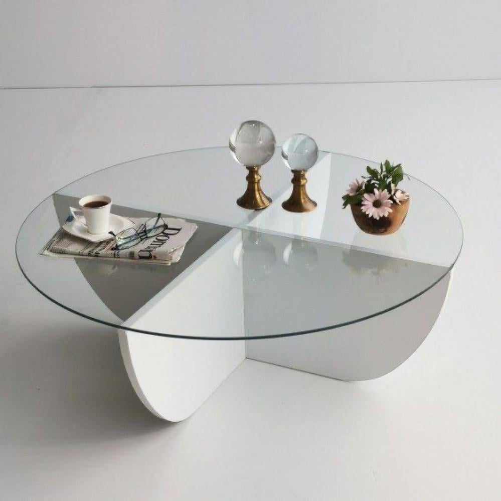 تتميز هذه الطاولة العصرية بتصميم أنيق يجمع بين البساطة والابتكار، حيث تتألف من سطح زجاجي دائري شفاف يمنحها مظهراً خفيفاً وانسيابياً، مما يعزز من الشعور بالرحابة في أي مساحة توضع بها.