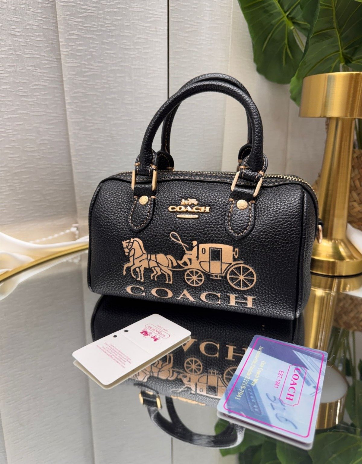 - تألقي بإطلالة فاخرة مع شنطة من علامة Coach بتصميمها الكلاسيكي الأنيق وشعار الحصان والعربة المميز. قطعة تجمع بين الفخامة والعملية بحجم ميني أنثوي يناسب إطلالاتك اليومية والمناسبات الخفيفة.