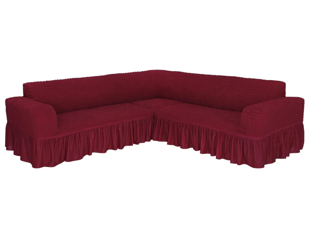 تلبيسة كنب حرف إل لون خمري (أحمر داكن )