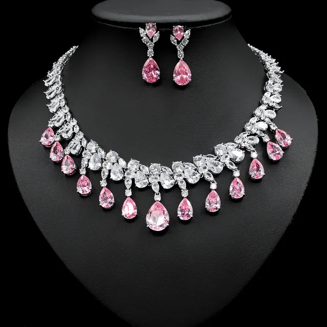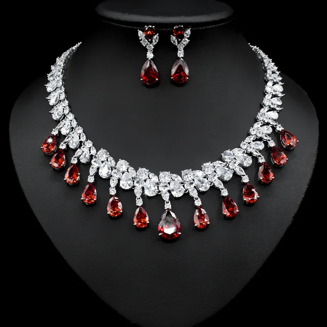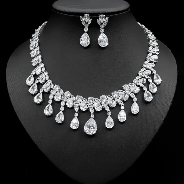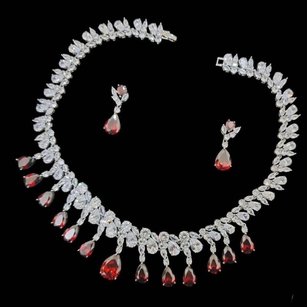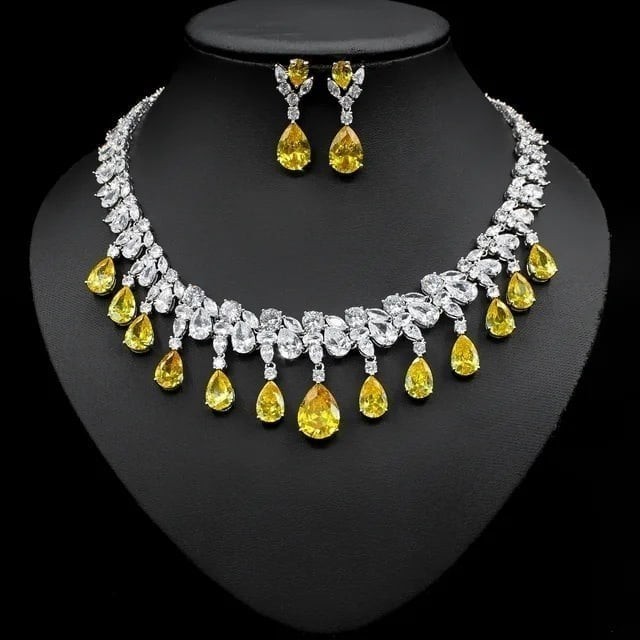 عقد واقراط من أحجار الزركون الحقيقي اللامعالمعدن النحاس مطلي بالذهبالمقاس طول القلادة مايقارب 45سمطول الأقراط 4سم