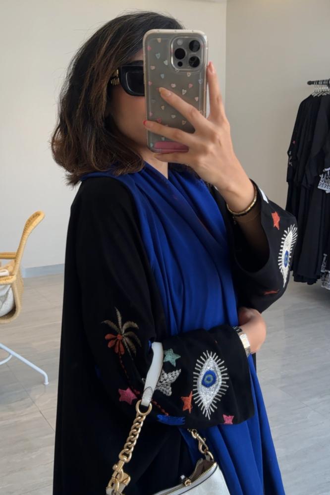 عباءة سوداء أنيقة، مصنوعة من قماش الكريب الملكي الفاخر،