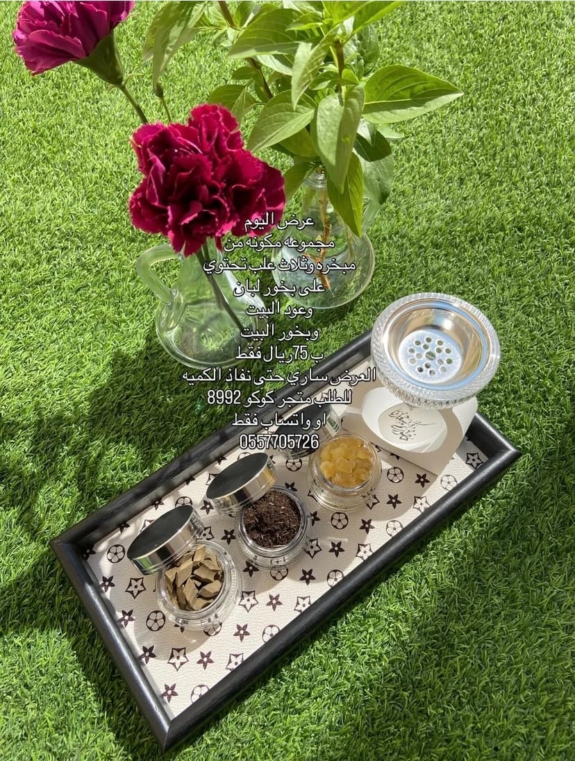 مجموعه مكونه من مبخره وثلاث علب تحتوي على بخور لبان وعود البيت وبخور البيت ب 75ريال فقط العرض ساري حتى نفاذ الكميه