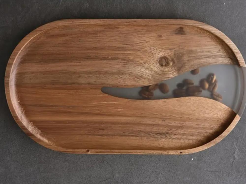 صينية خشب بيضاوية مصنوعة من خشب الاكاسيا