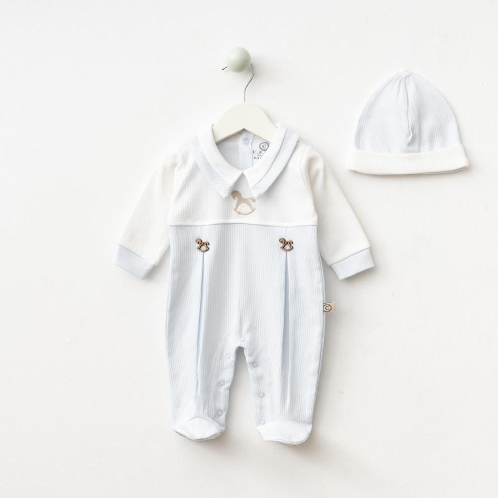 طقم أفرول قطني فاخر مع طاقية – لمسة ناعمة لأميرك الصغير 👶💙