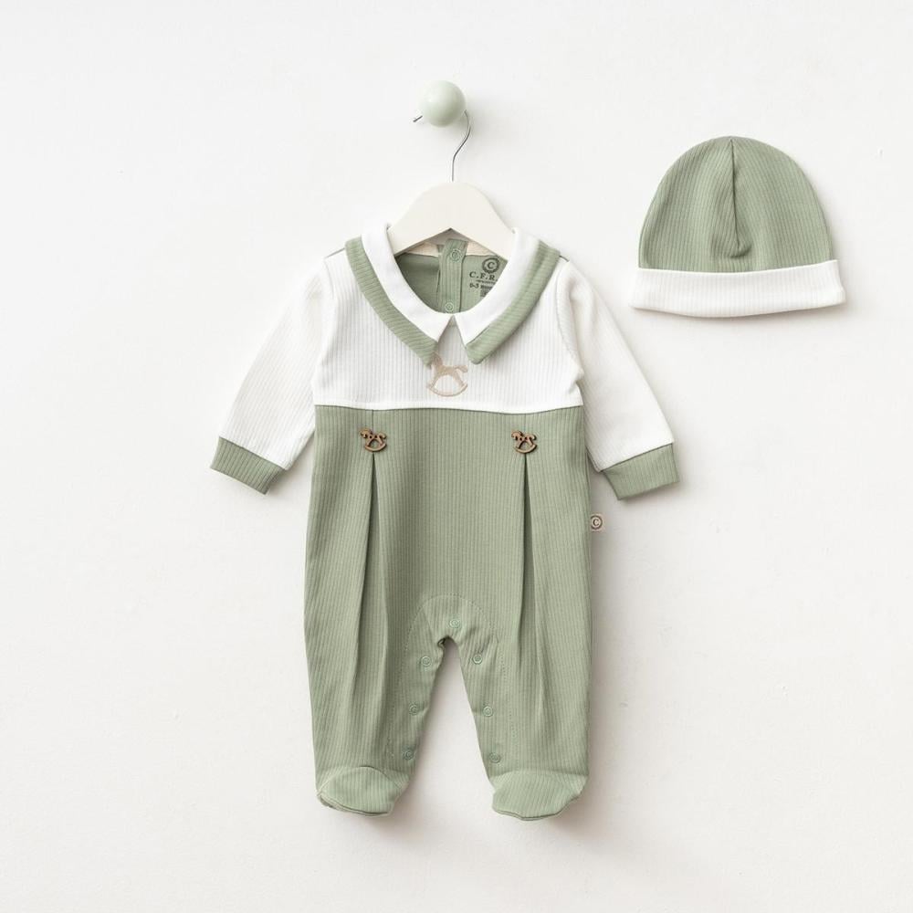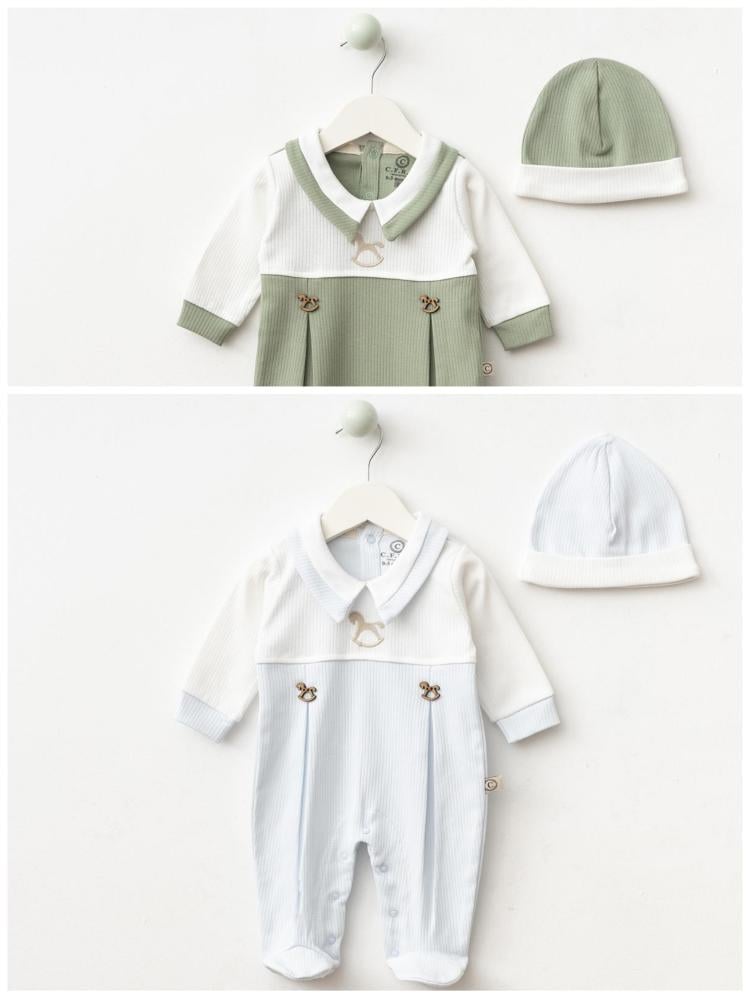 دلّلي طفلك بأناقة وراحة في آنٍ واحد مع هذا الطقم الفاخر المكوّن من أفرول بكم طويل وطاقية مطابقة. خامة قطنية ناعمة ومريحة على البشرة، وتصميم راقٍ مع تفاصيل دقيقة.