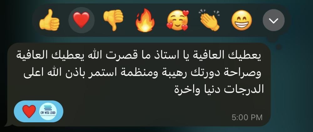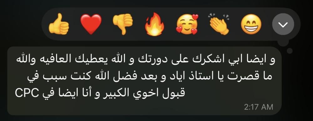 بفضل الله حتى الان وصلت نسبة المقبولين هذه الدفعة الى ٨٠٪ تقريباً من اجمالي المقبولين في البرنامج وهو الاعلى منذ بداية CPP WITH EYAD