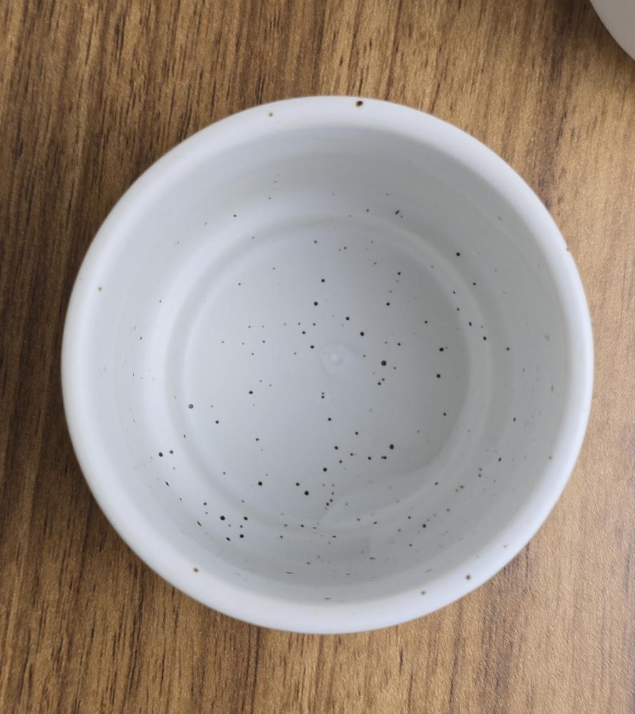 - كل كوب يتميز عن الآخر بلمسته الخاصة، وقد يختلف في درجة لون الشعار و لمعانه، أو توزيع النقاط كما قد تحتوي بعض الأكواب على تعرجات طفيفة أو فرق بسيط في اللون بين الجهات، وذلك نتيجة التصنيع اليدوي الدقيق.