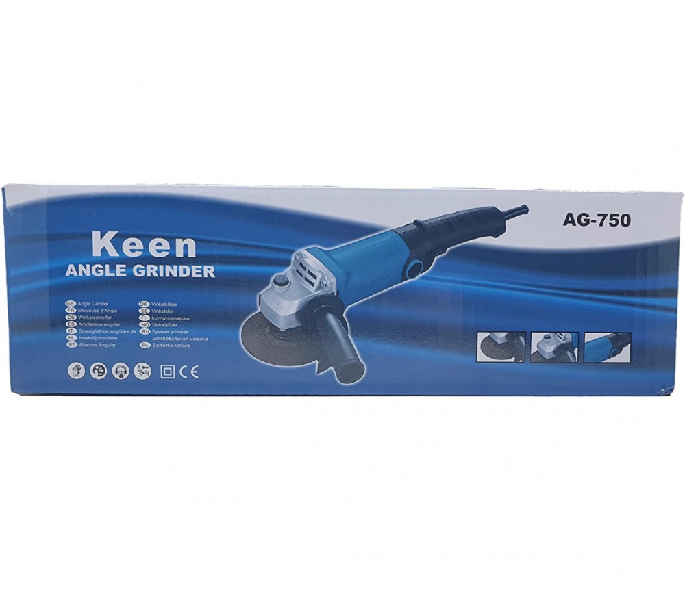 صاروخ من شركة keen - حجم 4.5 بوصة زر تشغيل خلفي - 750 واط - 11000 دورة في الدقيقة يحتوي على فحمات ااصافية + حجر قص حديد مجاني