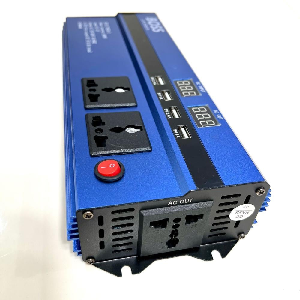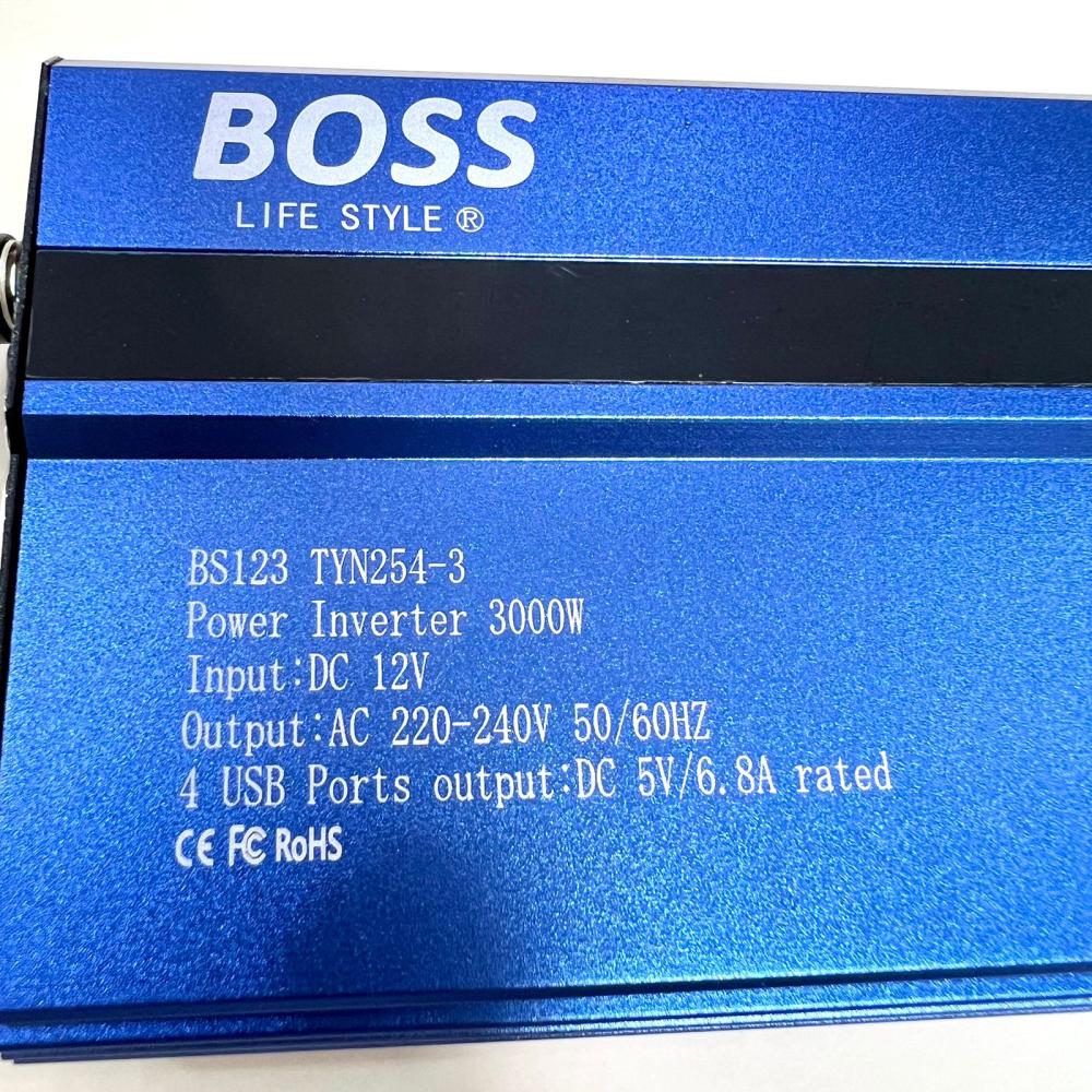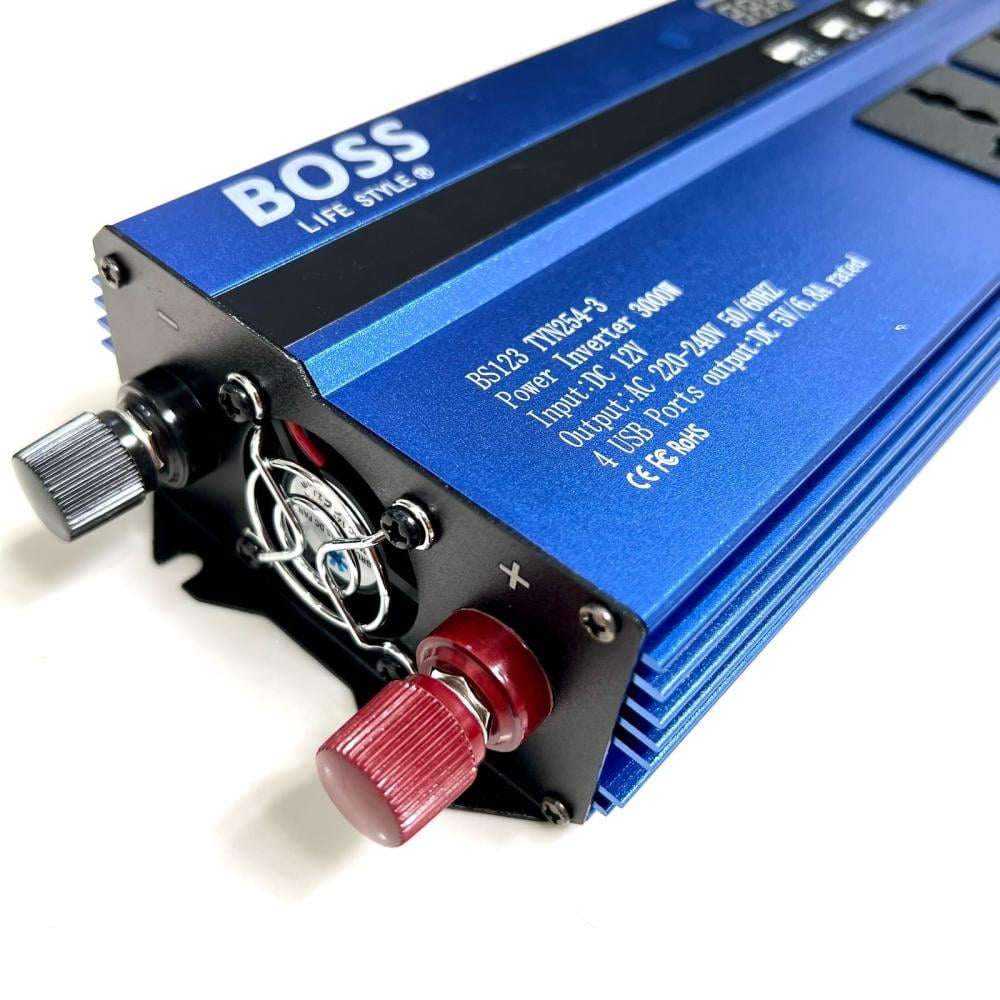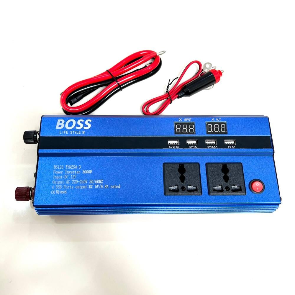 - محول كهرب السيارة من شركة BOSS يقوم بتحويل كهرب السياره من ١٢ فولت الى ٢٢٠ -٢٤٠ فولت ( ٥٠/ ٦٠ ) هرتز ) بقوة 1000 واط يحتوي على ٤ منافذ USB و ٣ افياش ثلاثية. صنع في الصين.