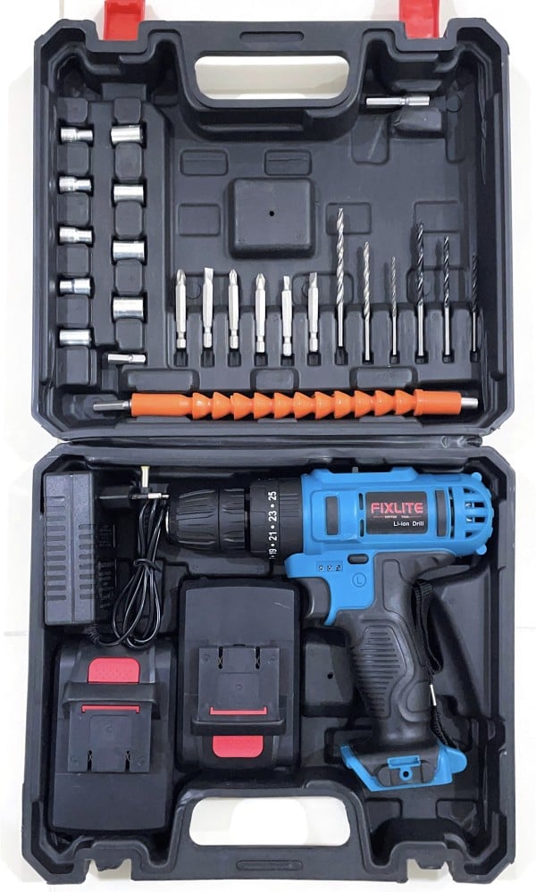 تحتوي الحقيبة على دريل + 2 بطارية + شاحن + 24 قطعة متنوعةيستخدم لثقب الجدران والحديد والخشبيستخدم لفك وربط البراغي21 فولتكهرب 220صنع في الصينضمان تشغيل فقط