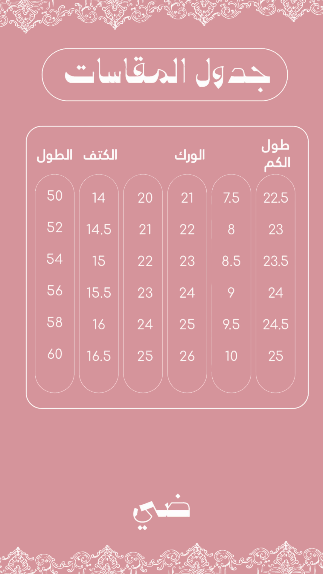 ملاحظه: في حال موديل العباية كلوش يكون عرض العباية من الامام اسفل العباية كالتالي: