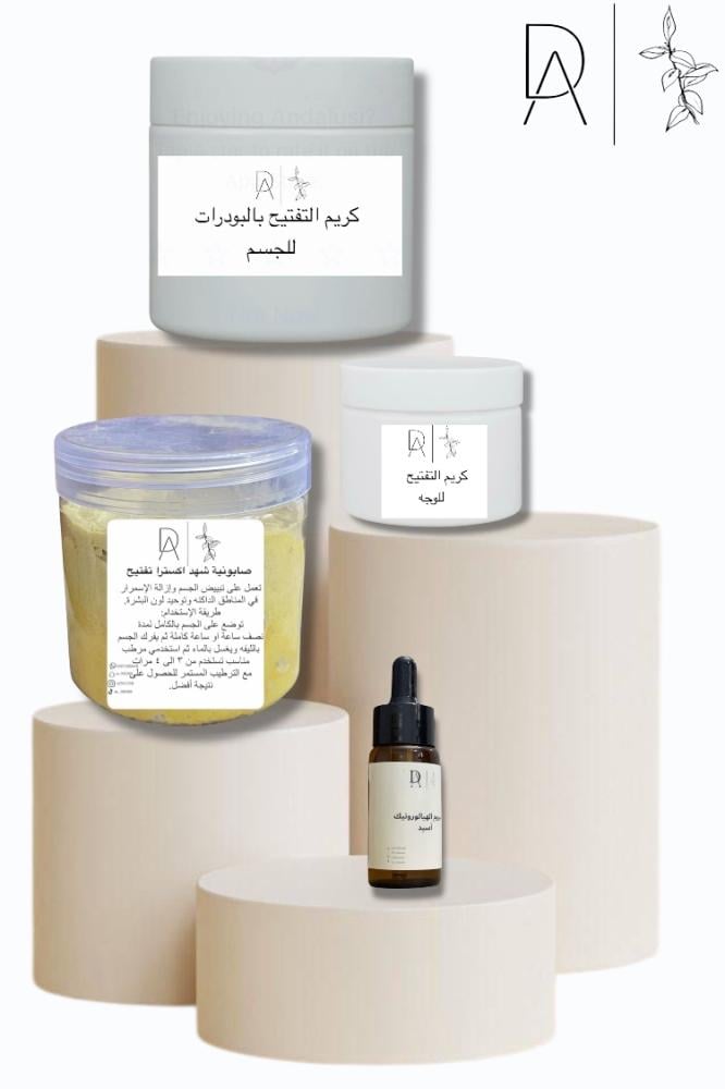 جميع المكونات تحتوي على زيوت طبيعية وآمنه وبودرات تفتيح بنسب مدروسه