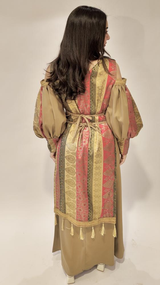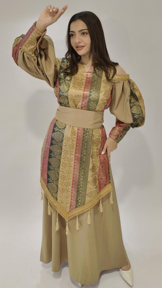 جلابية بيج غامق مصنوعة من أقمشة عالية الجودة تجمع بين التقليدية واللمسة العصرية حيث تصميمها الأنيق يضمن لك مظهرًا رائعًا في جميع المناسبات من دار رابعة.