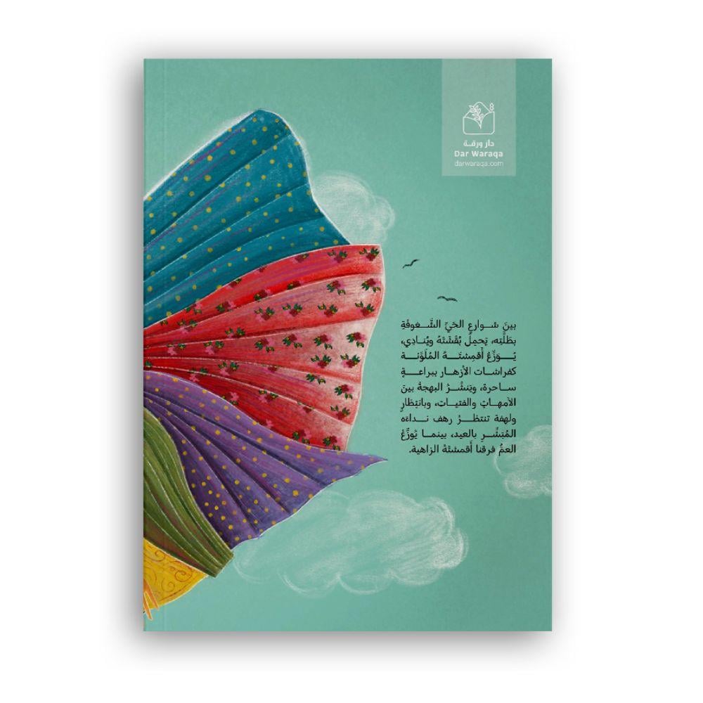 بين شوارع الحي الشغوفة بطلته يحمل بُقشته وينادي يوزع أقمشته الملونة كفراشات الأزهار ببراعة ساحرة، وينشر البهجة بين الأمهات والفتيات بانتظار ولهفة تنتظر رهف نداءه المبشر بالعيد بينما يوزع العم فرقنا أقمشته الزاهية.