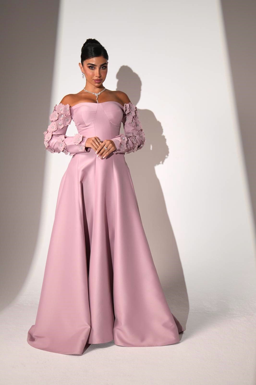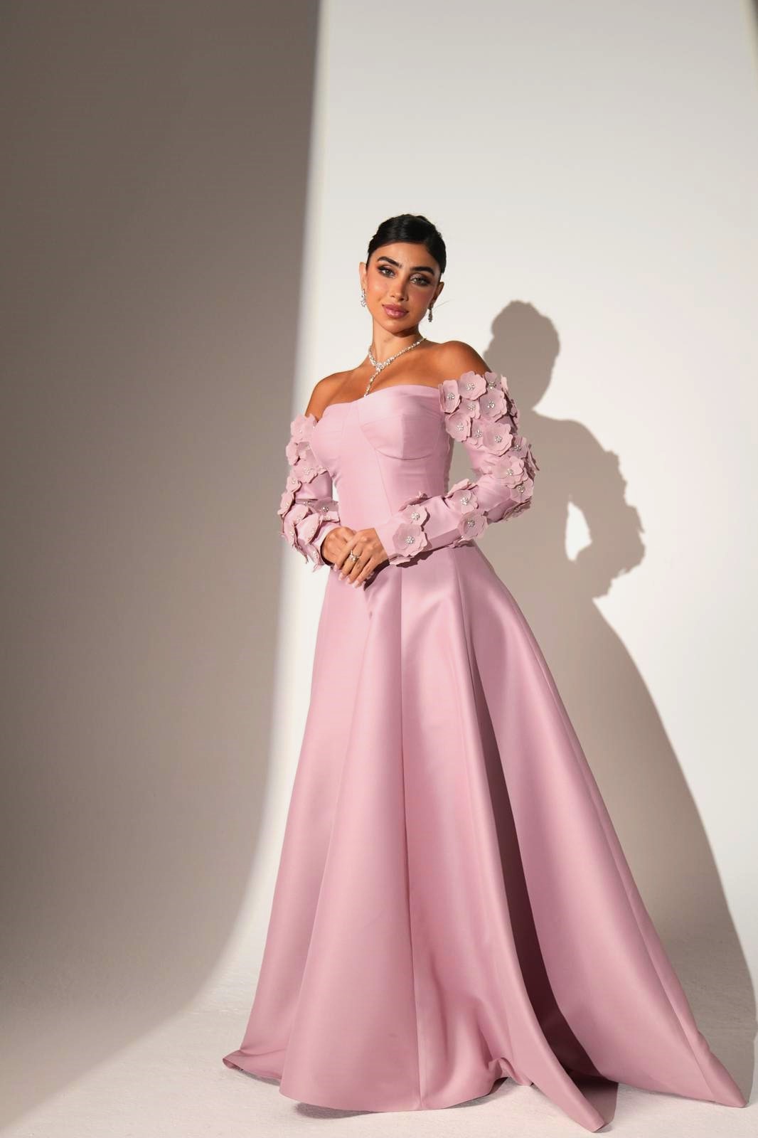 فستان سهرة جديد خامة ميكادو وورد ليزر