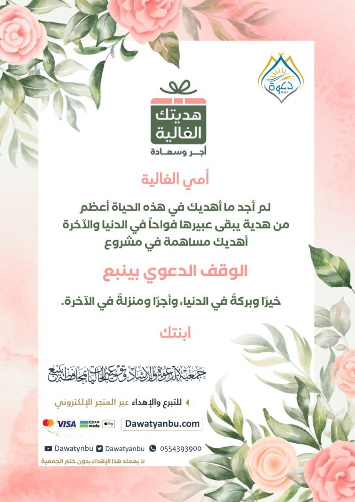لطلب الاهداء تواصل معنا عبر الواتس آب بعد التبرع عبر الرقم: