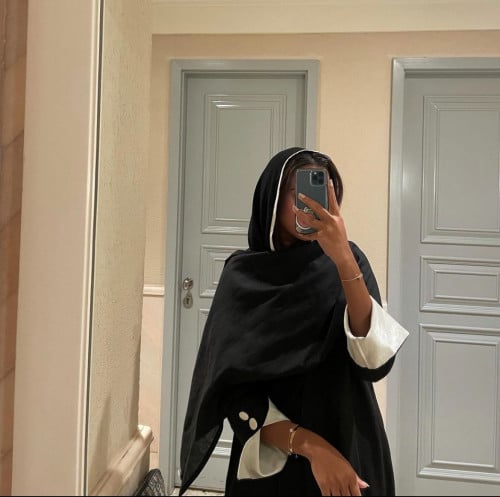 عبايه سودا مع ابيض مع قطعه عالكتف