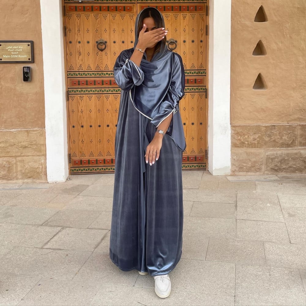 عباية مخمل مع قطعة عالكتف