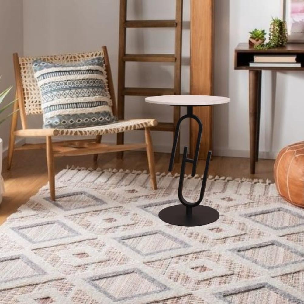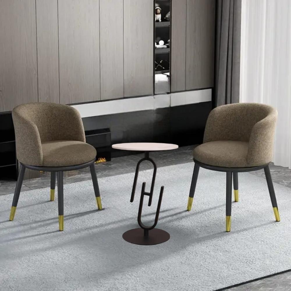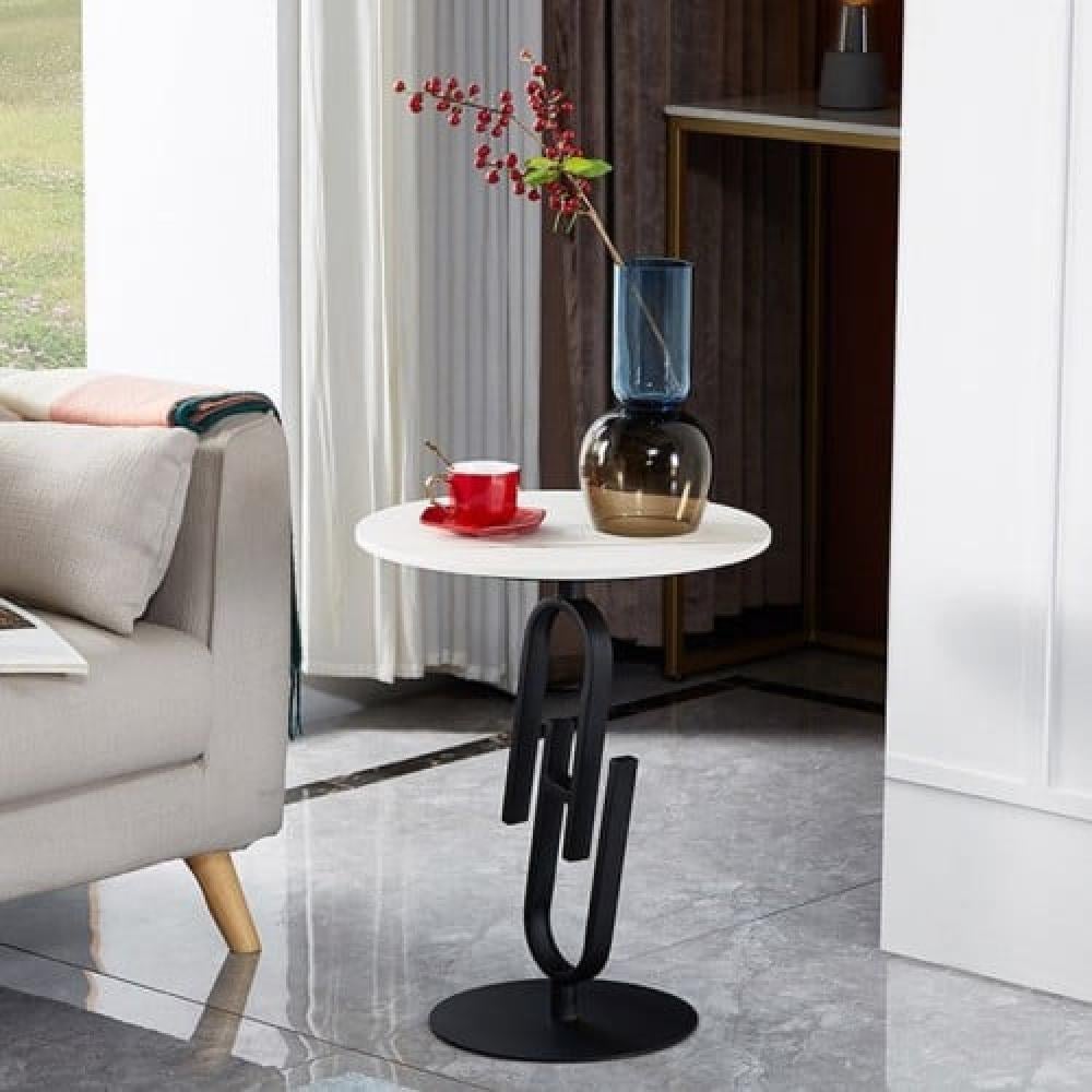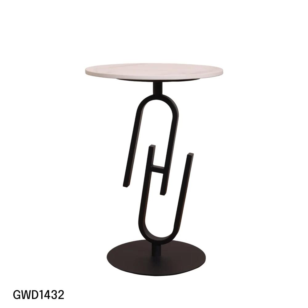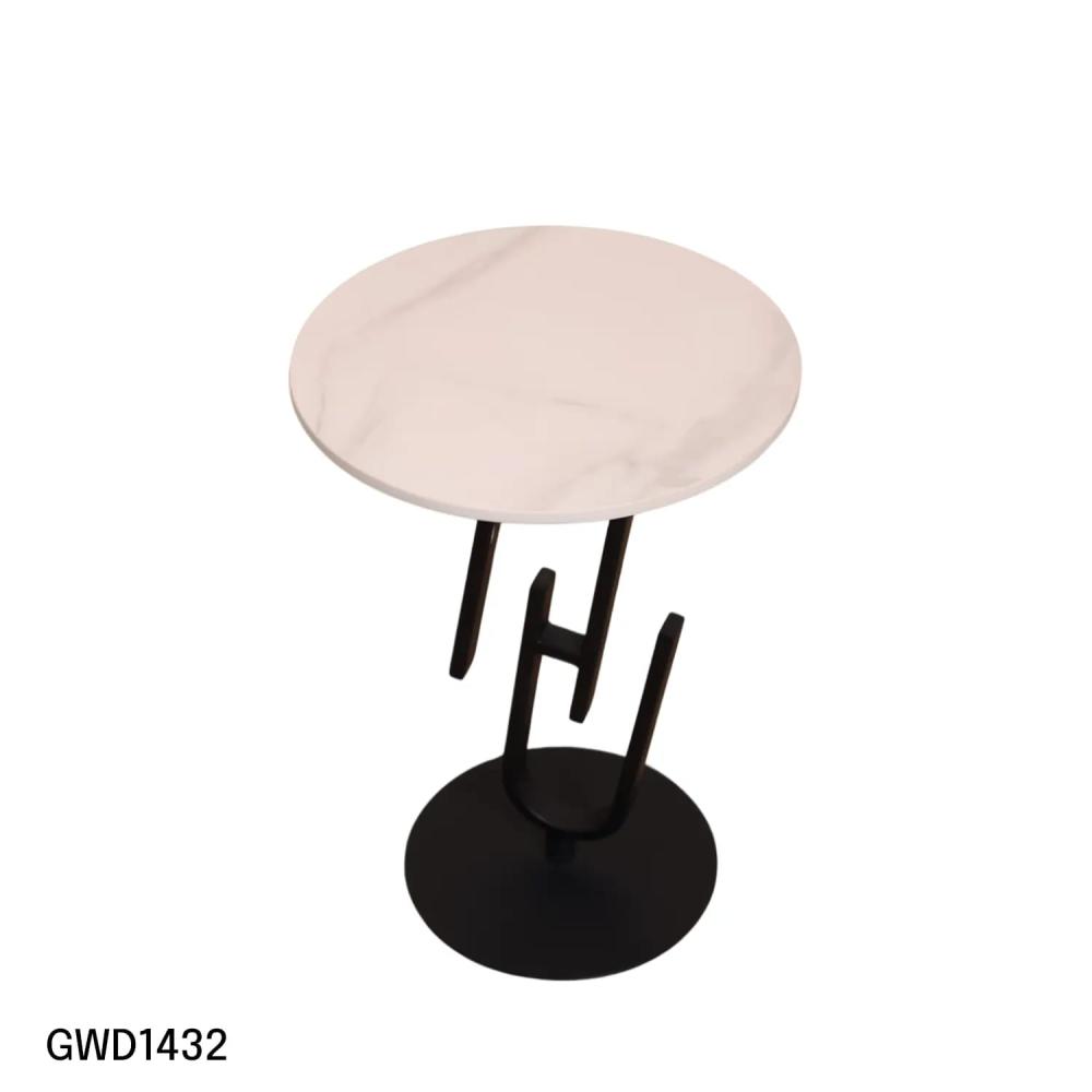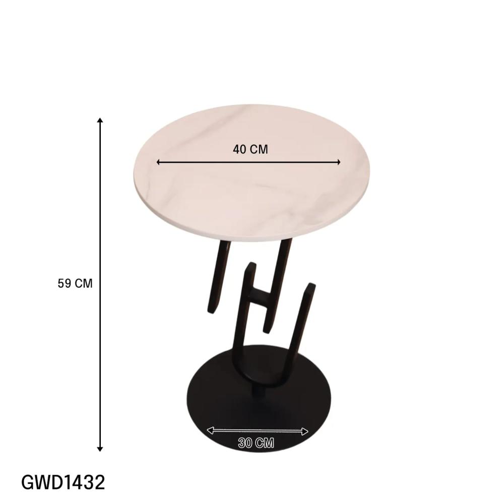 طاولة ضيافة للقهوة فاخرة دائرية 40سم سطح رخام وقاعدة حديد اسود GWD1432