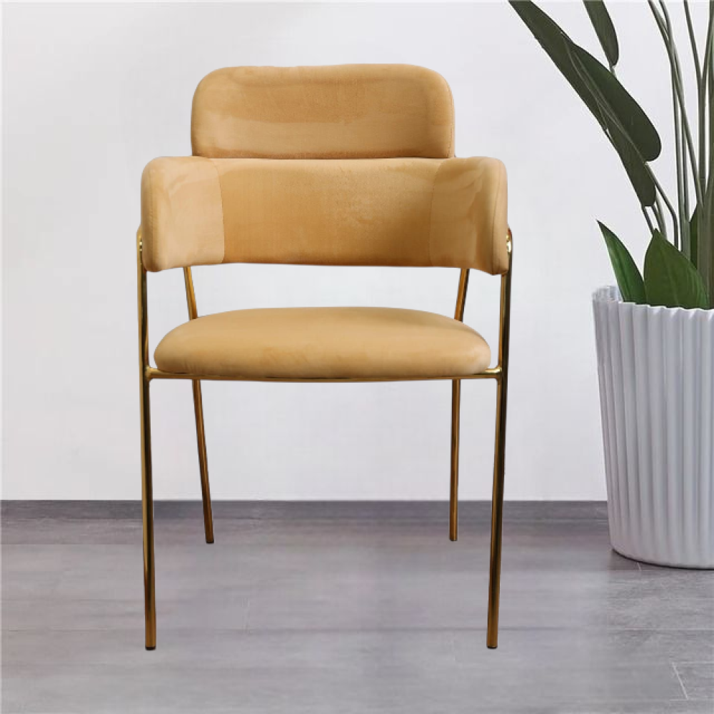 كرسي طعام وكافية قماش قطيفة اصفر وقاعدة ارجل ستيل ذهبي HC-154A YELLOW
