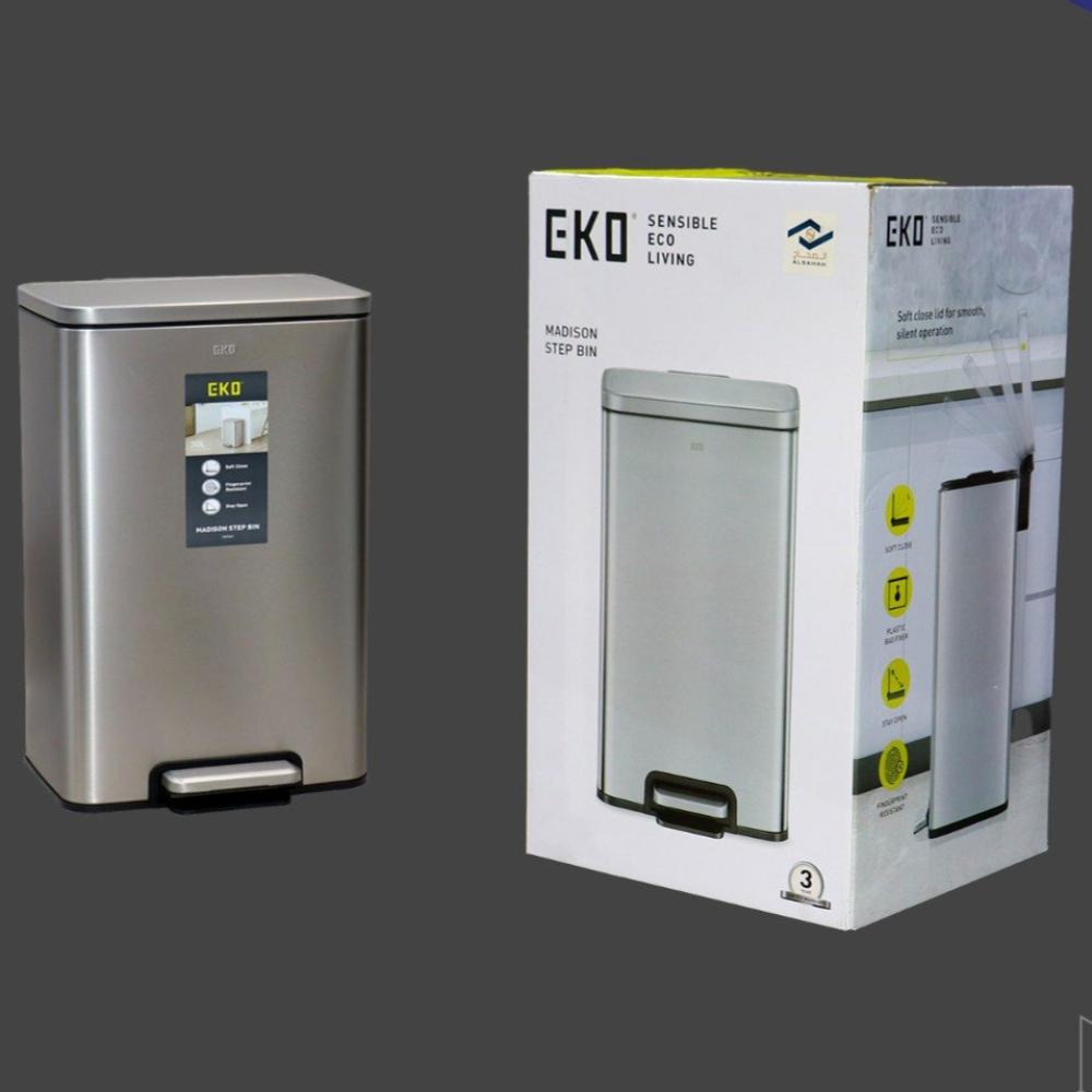 سلة مهملات EKO مستطيل بدعاسة ستيل فضي 12لتر K93613