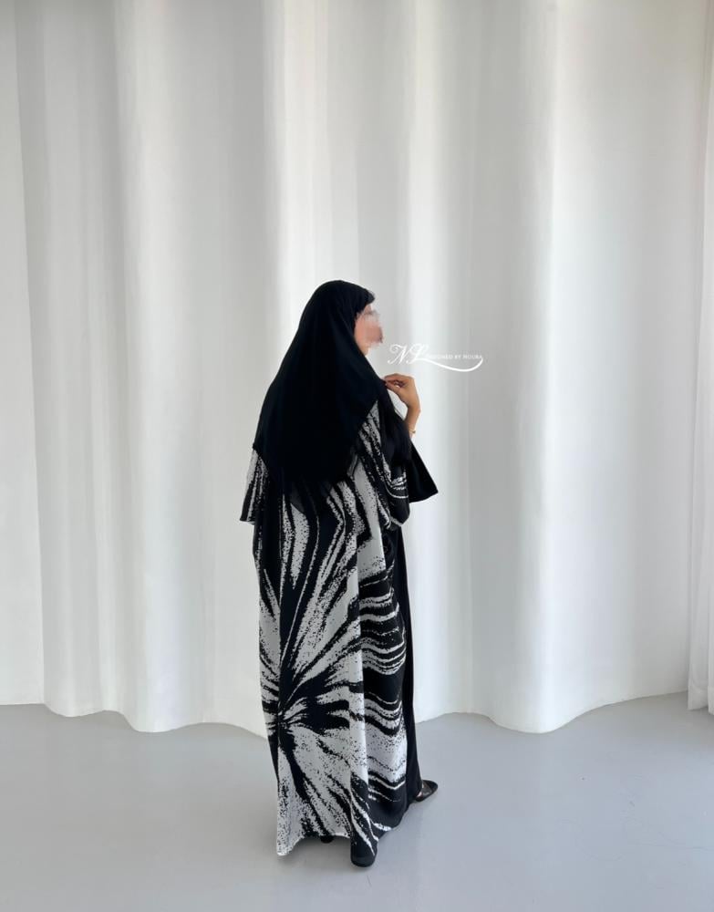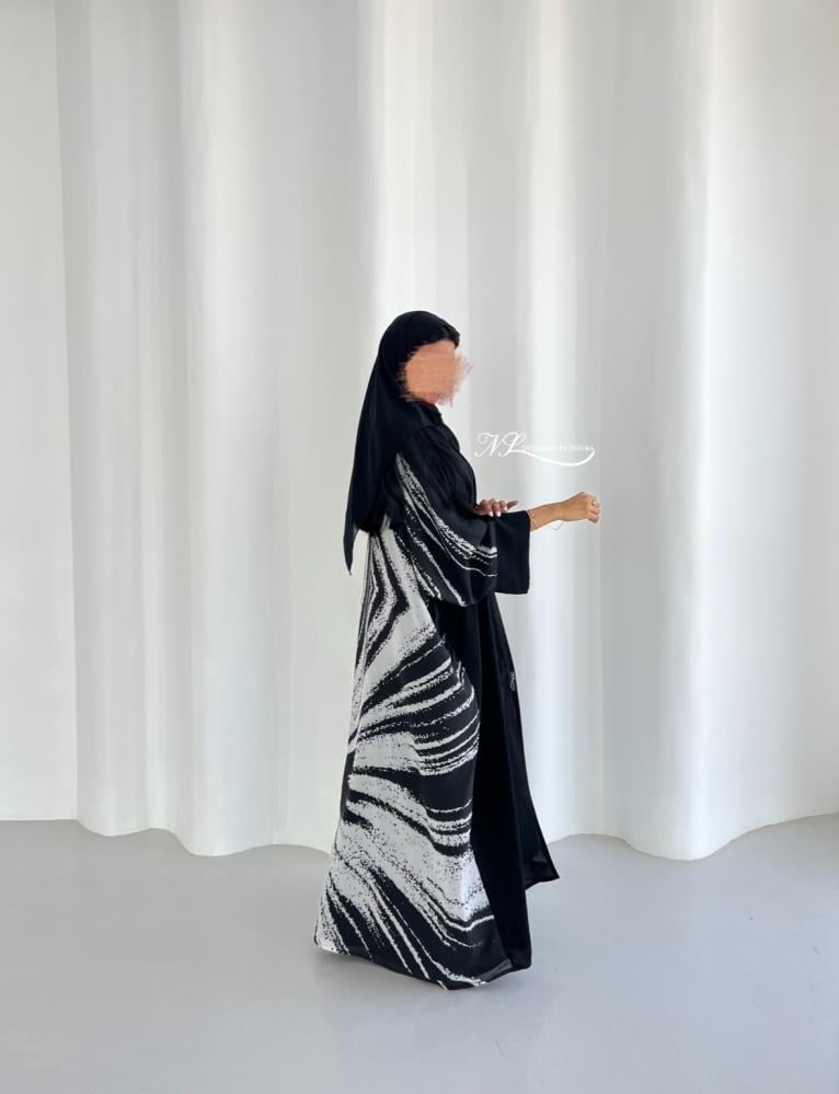 قصة العبايه نص بشت اسود مع طباعه خاصه في الخلف كامل
