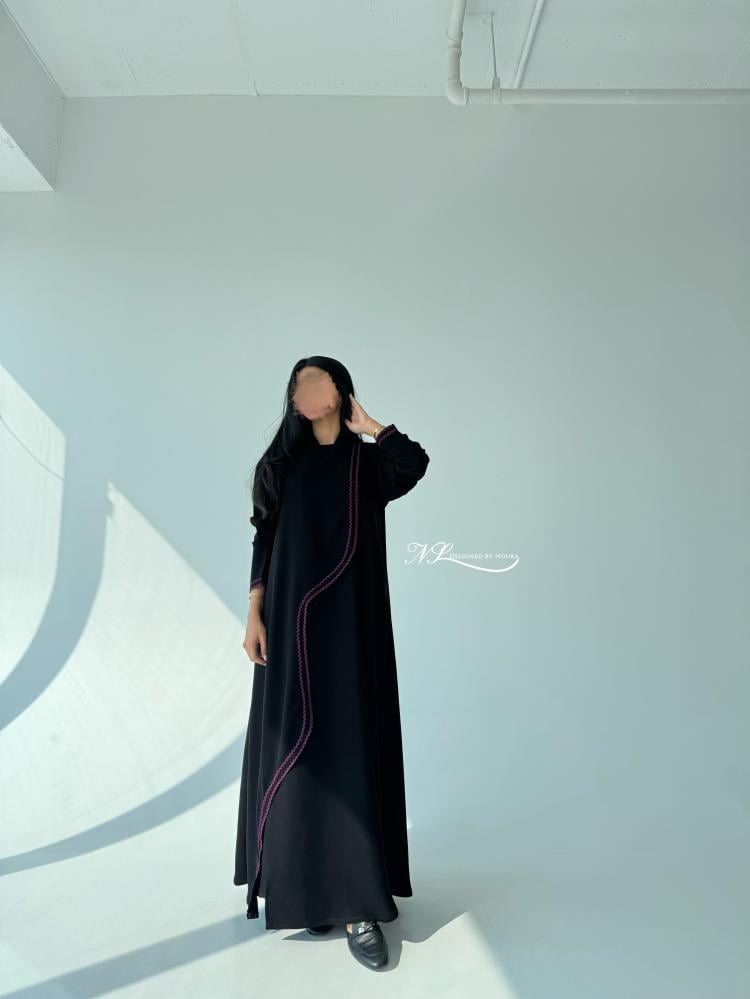 قصة العبايه نص كلوش مع كلفه في طرف العبايه كامل وفي الاكمام كما موضح في الصور.