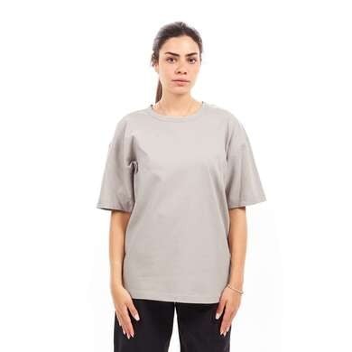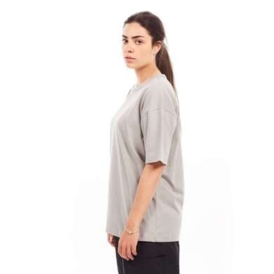تي شيرت كبير الحجم من قطن الجيرسيه الناعم بياقة مستديرة مضلعة وأكتاف منسدلة وحافة مستقيمة.
