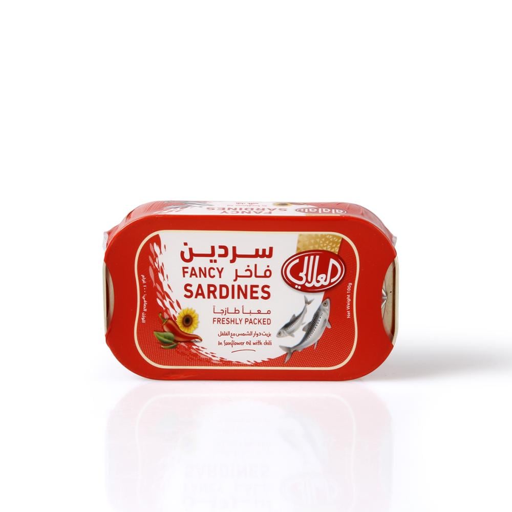 العلالي سردين فاخر بزيت دوار الشمس مع الفلفل الحار 100 جم