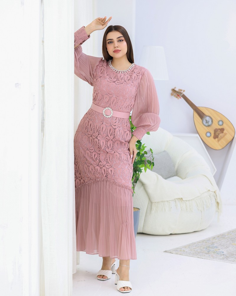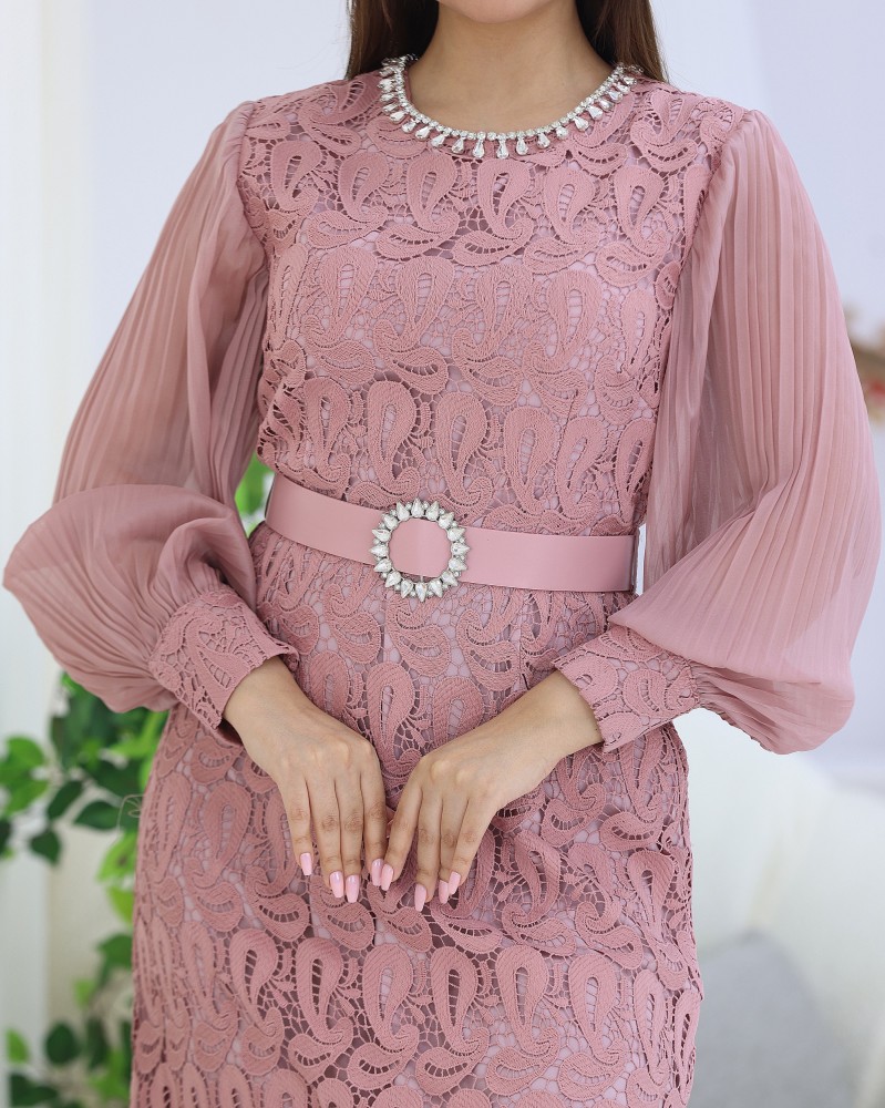 - نوع المنتج : فستان دانتيل بحزام