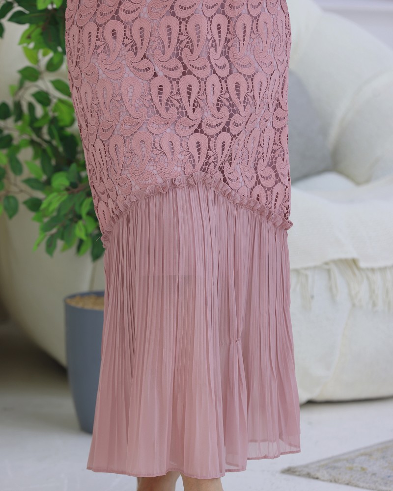 فستان دانتيل طويل مزين الأكمام هو قطعة أنيقة ومميزة تضيف لمسة جمالية وأنثوية لإطلالتك ، يأتي هذا الفستان بتصميم لف مريح وأنيق مع أكمام مزينة تضفي جاذبية خاصة عليه ، مصنوع من خامات عالية الجودة توفر الراحة اثناء ارتدائه، يمكن ارتداؤها في مناسبات مختلفة مثل الحفلات والعزومات ، والمناسبات الرسمية ، كما يمكن تنسيقه مع حذاء بكعب عالي وحقيبة صغيرة لإطلالة متكاملة وأنيقة .