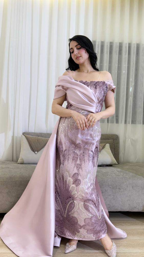 فستان سهره مطرز مزين بالذيل