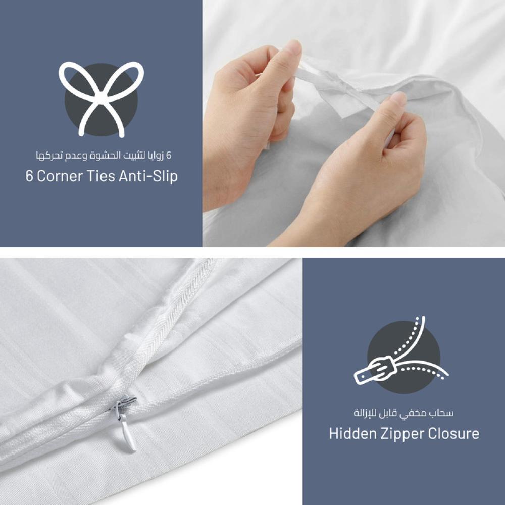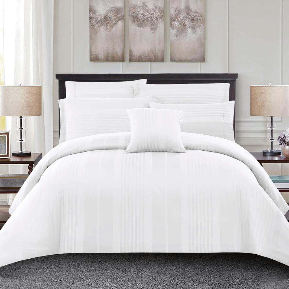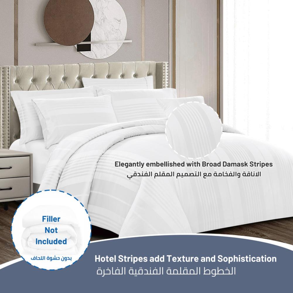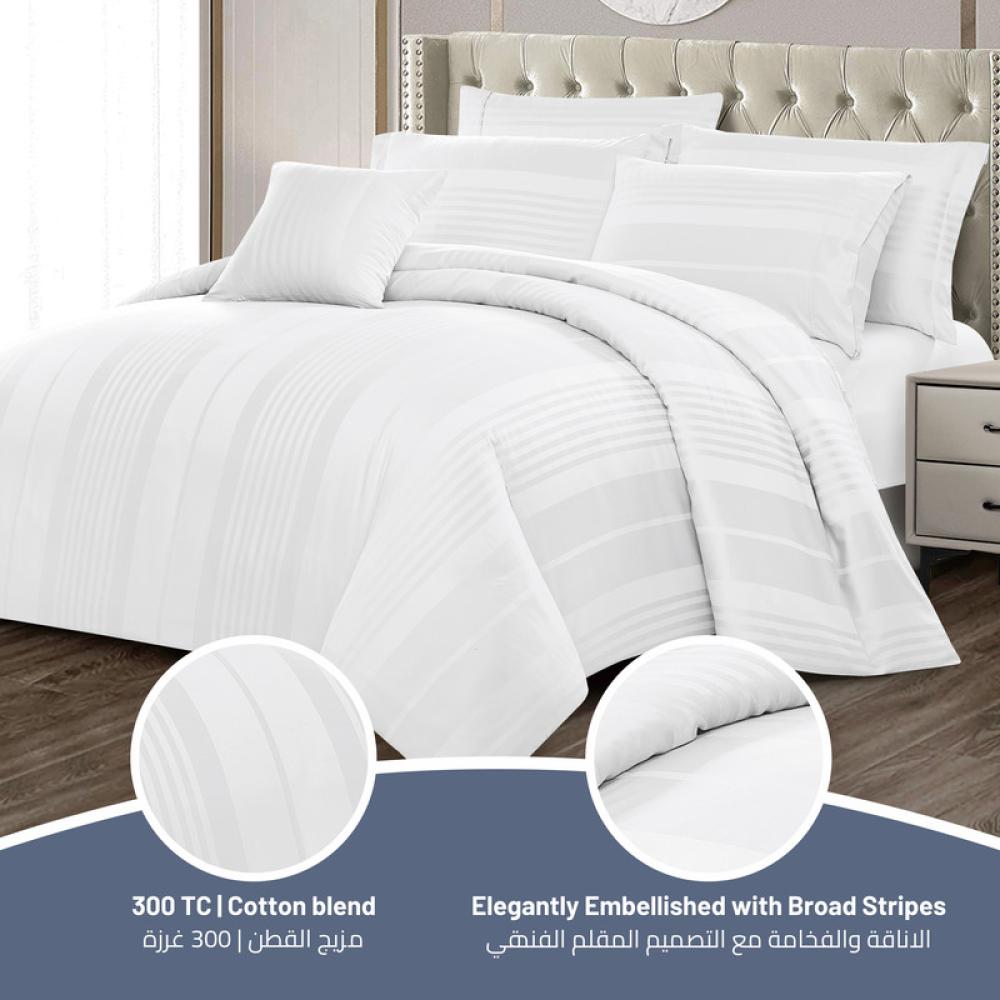 غطاء لحاف فندقي مقلم قطن 300 غرزة نفرين 7 قطع بدون حشوة ابيض - منتج عالي الجودة