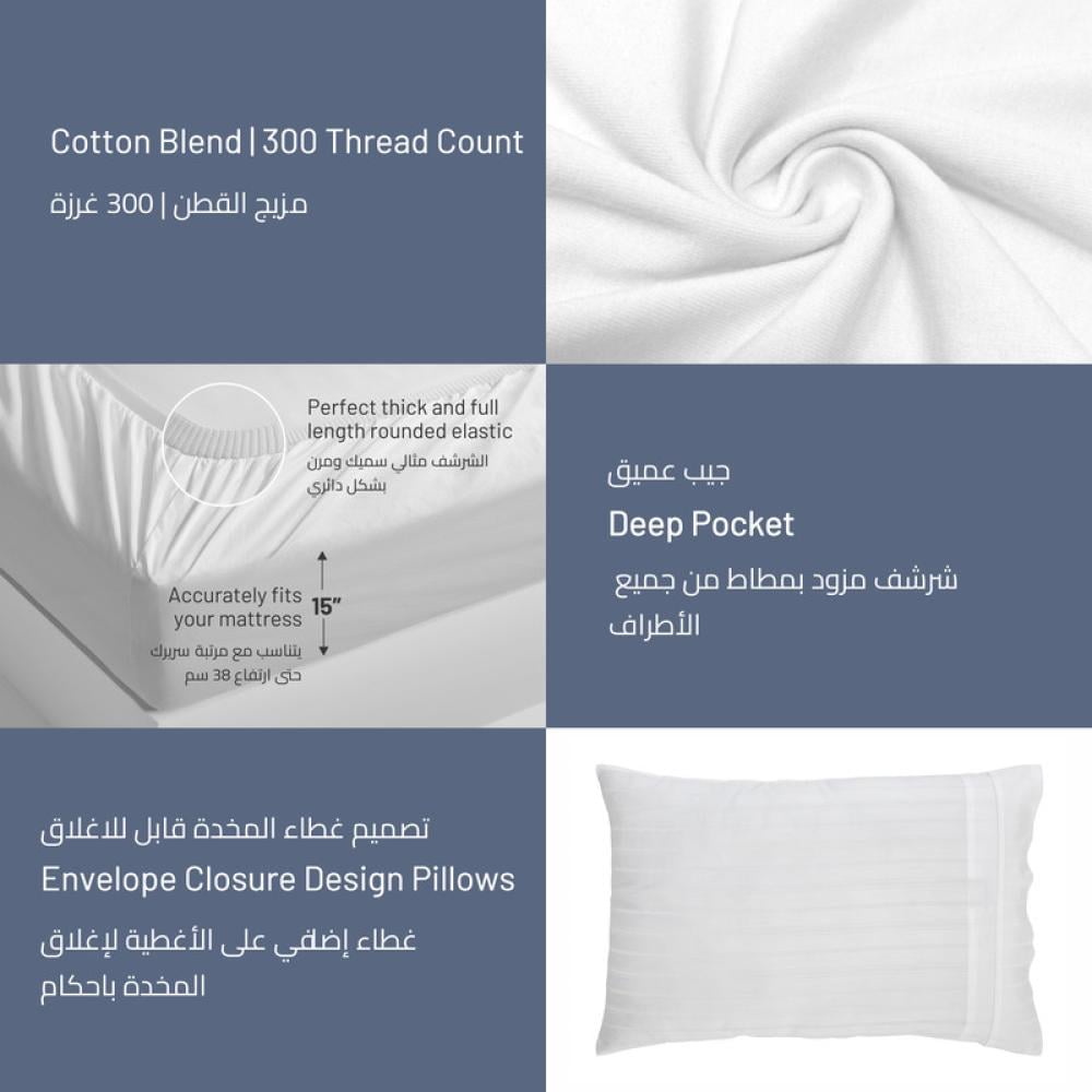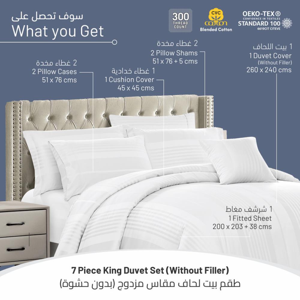 مميزات غطاء لحاف فندقي مقلم قطن 300 غرزة نفرين 7 قطع بدون حشوة ابيض: