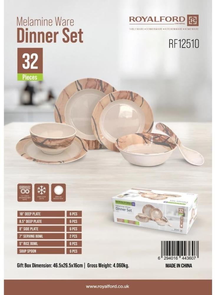 طقم عشاء ميلامين 32 قطعة مقاوم للكسر، آمن للاستخدام في الفريزر RF12510