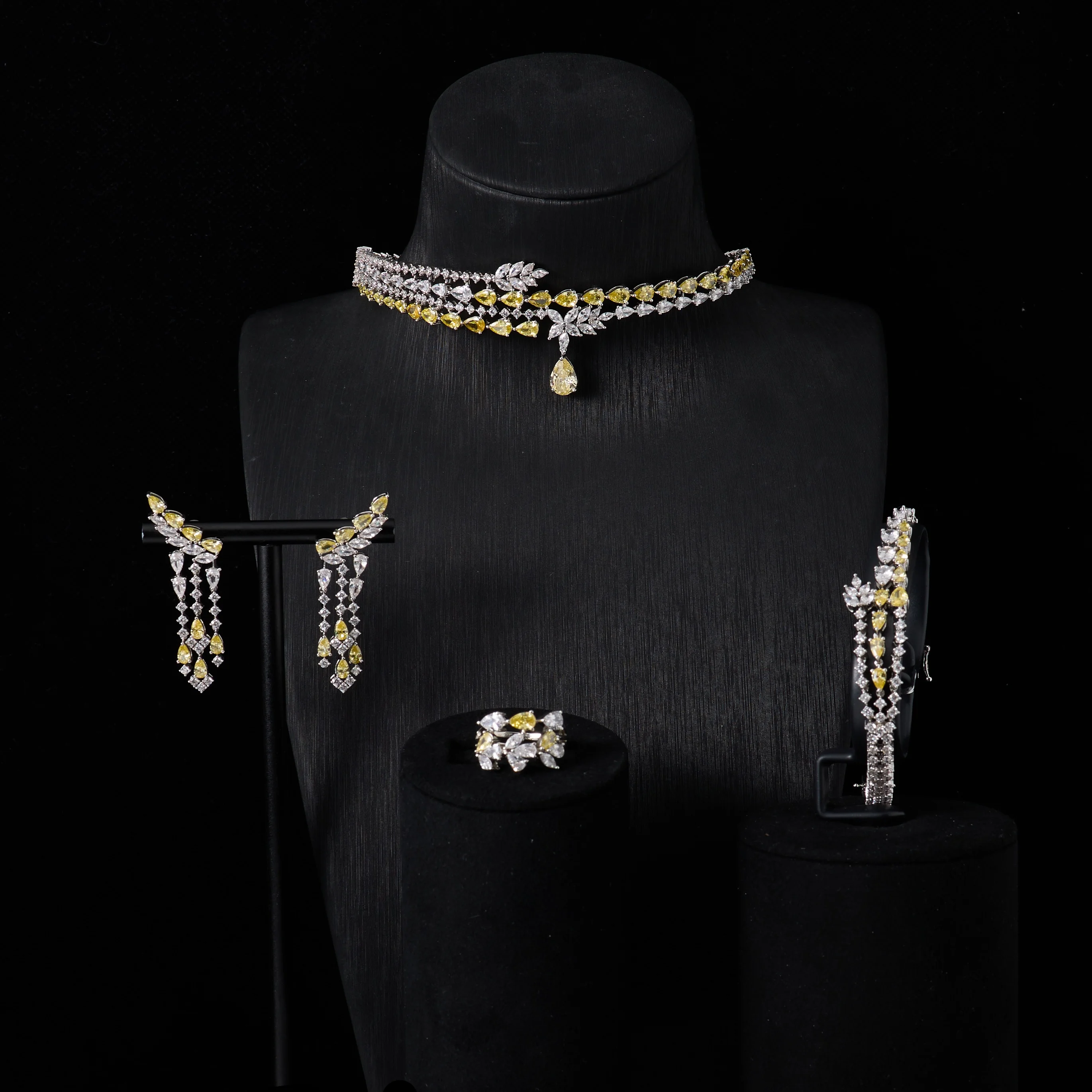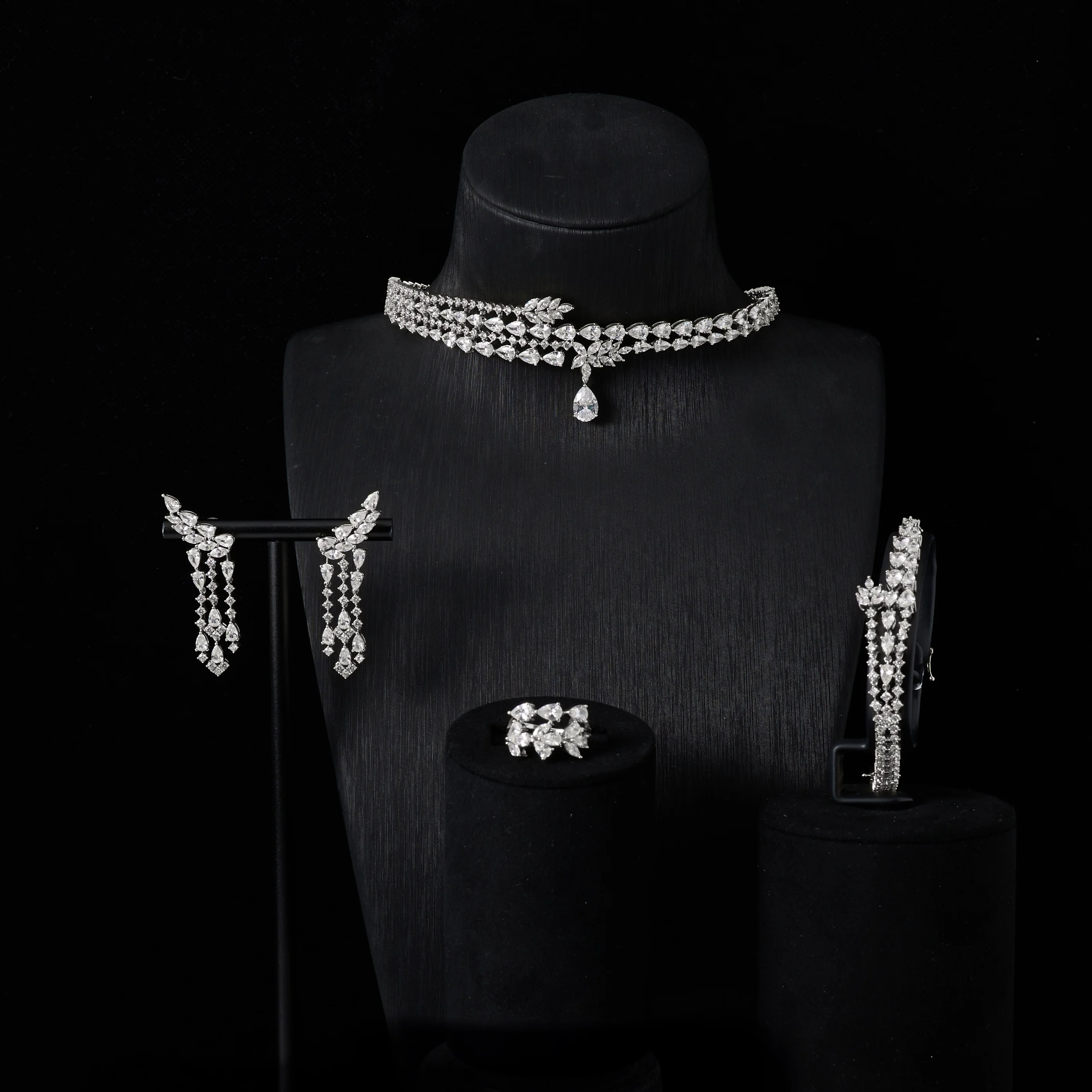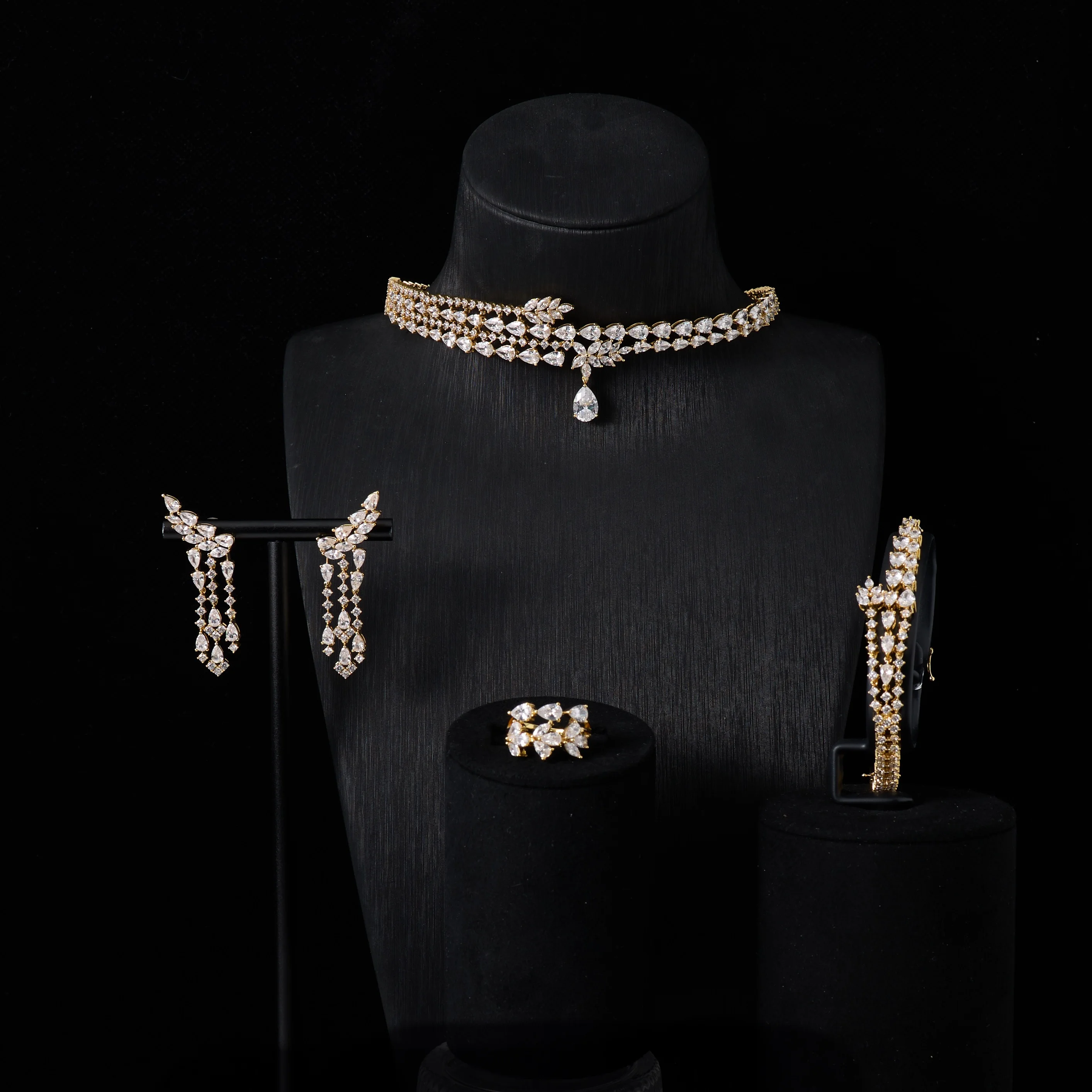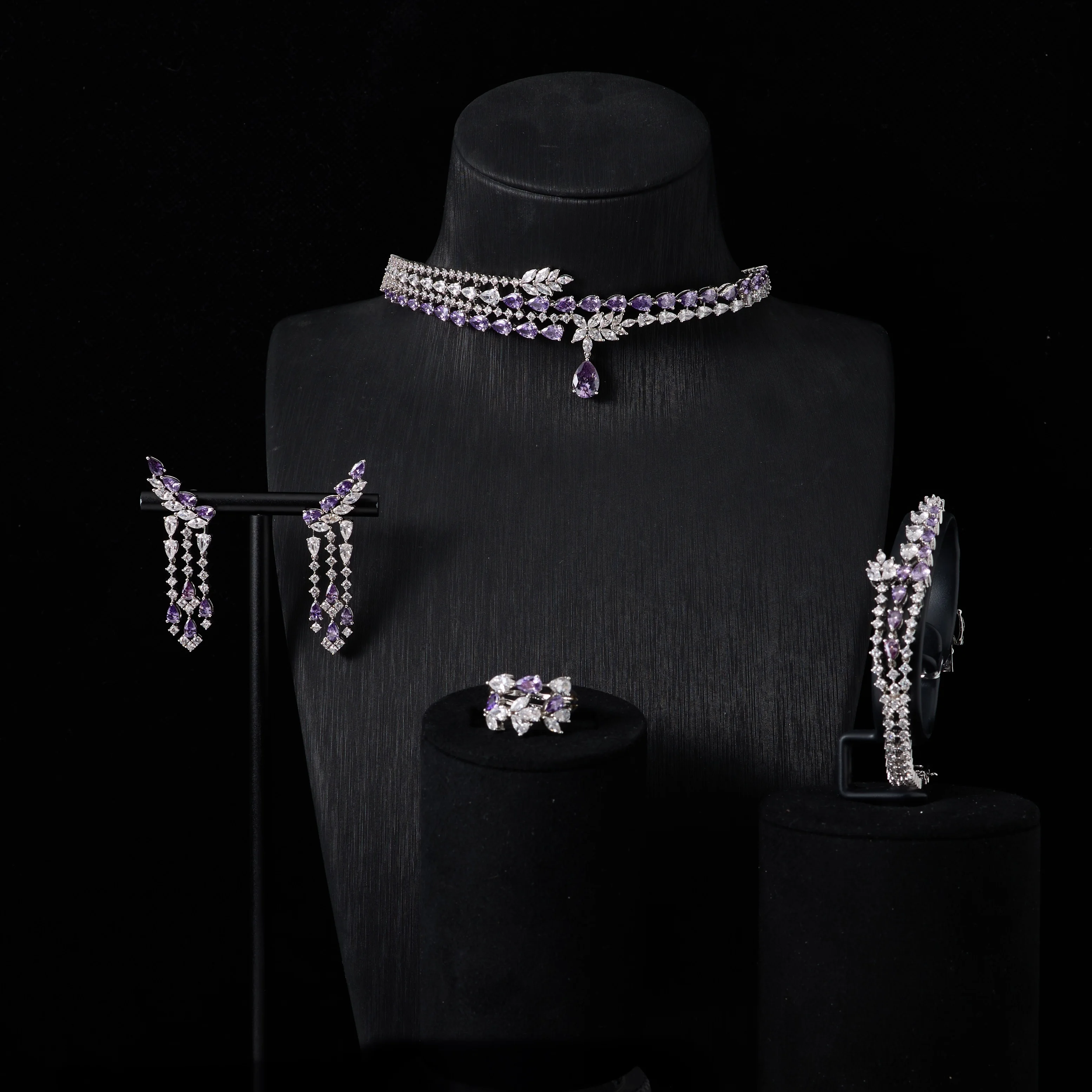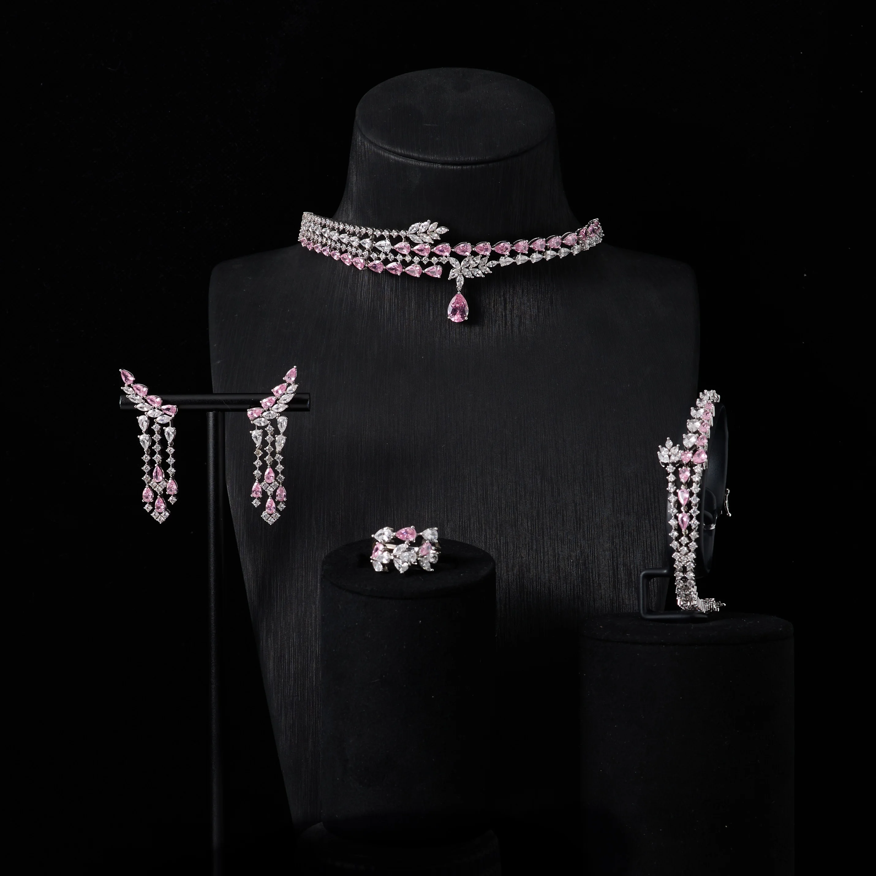 IN JEWELIFE الفاخرة المختنق الرقبة القلائد هدية مجموعة للنساء مجموعات مجوهرات لون فريد مكعب زركونيا اكسسوارات الزفاف