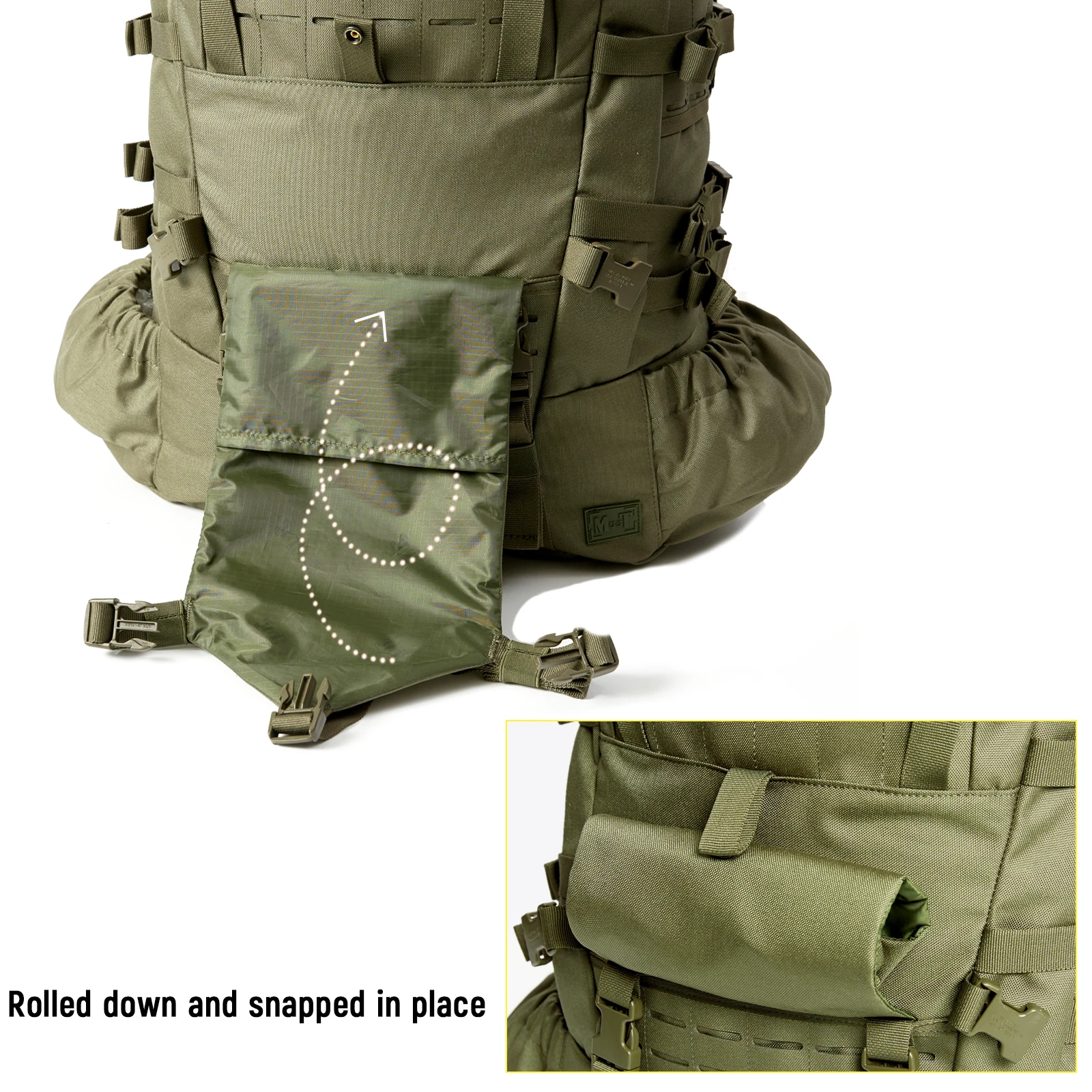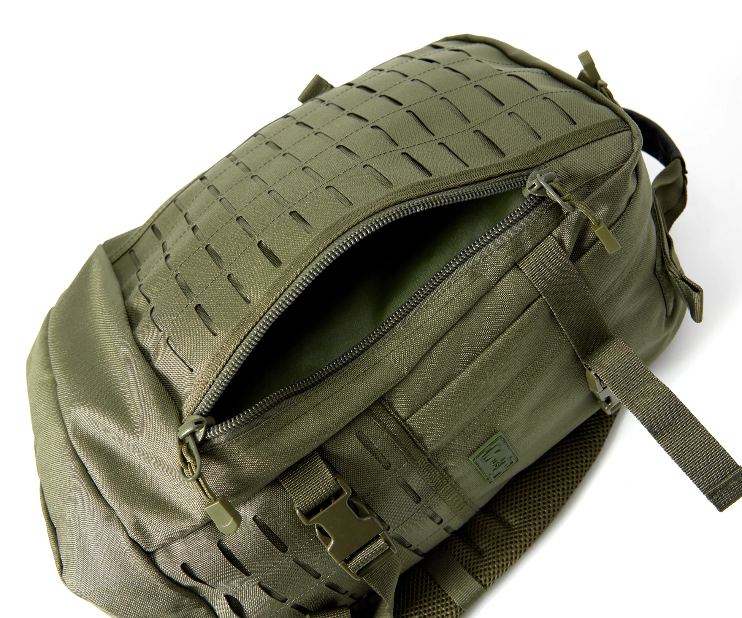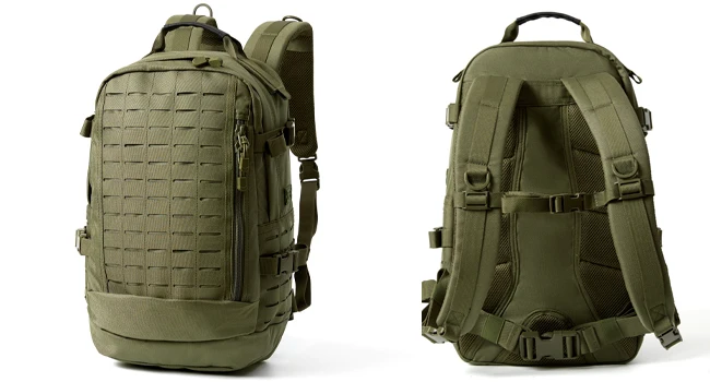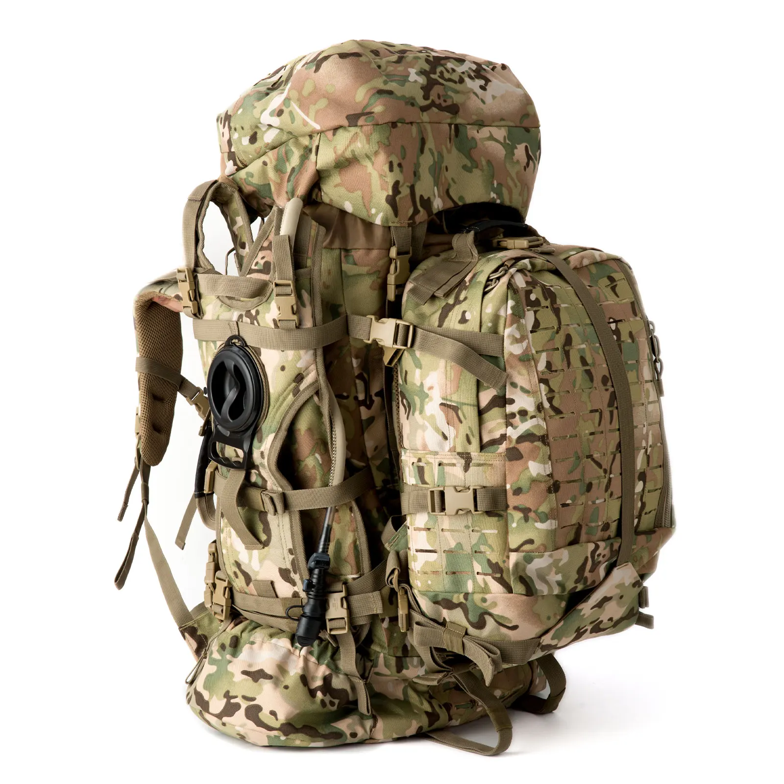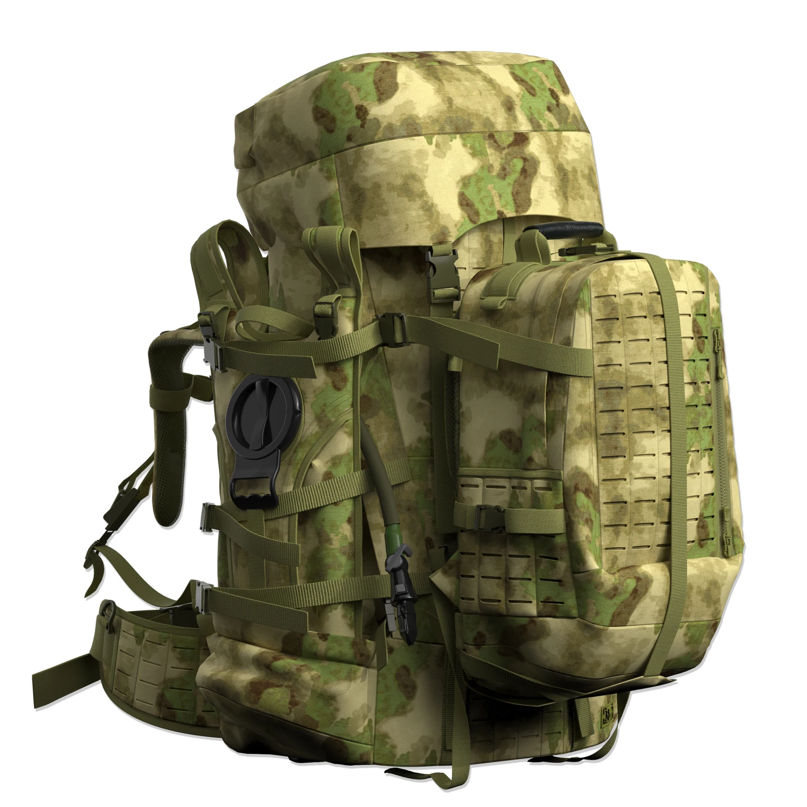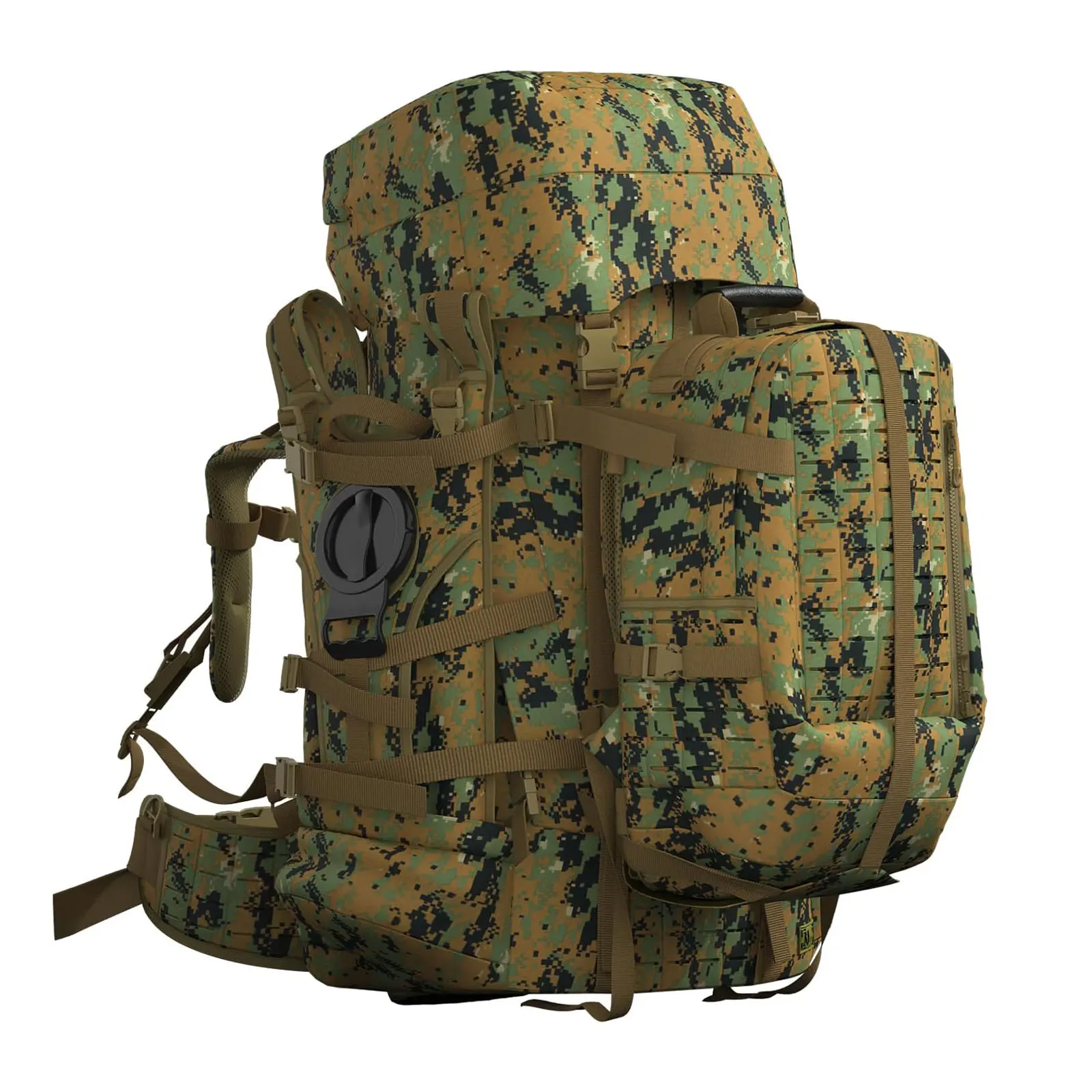 مادة الحقيبة: نسيج مموه متعدد الكاميرات من الدرجة العسكرية 1000D مع طارد للماء، وسحابات YKK مزدوجة السحب مقاومة للماء شديدة التحمل، ونظام إبزيم UTX الأصلي.