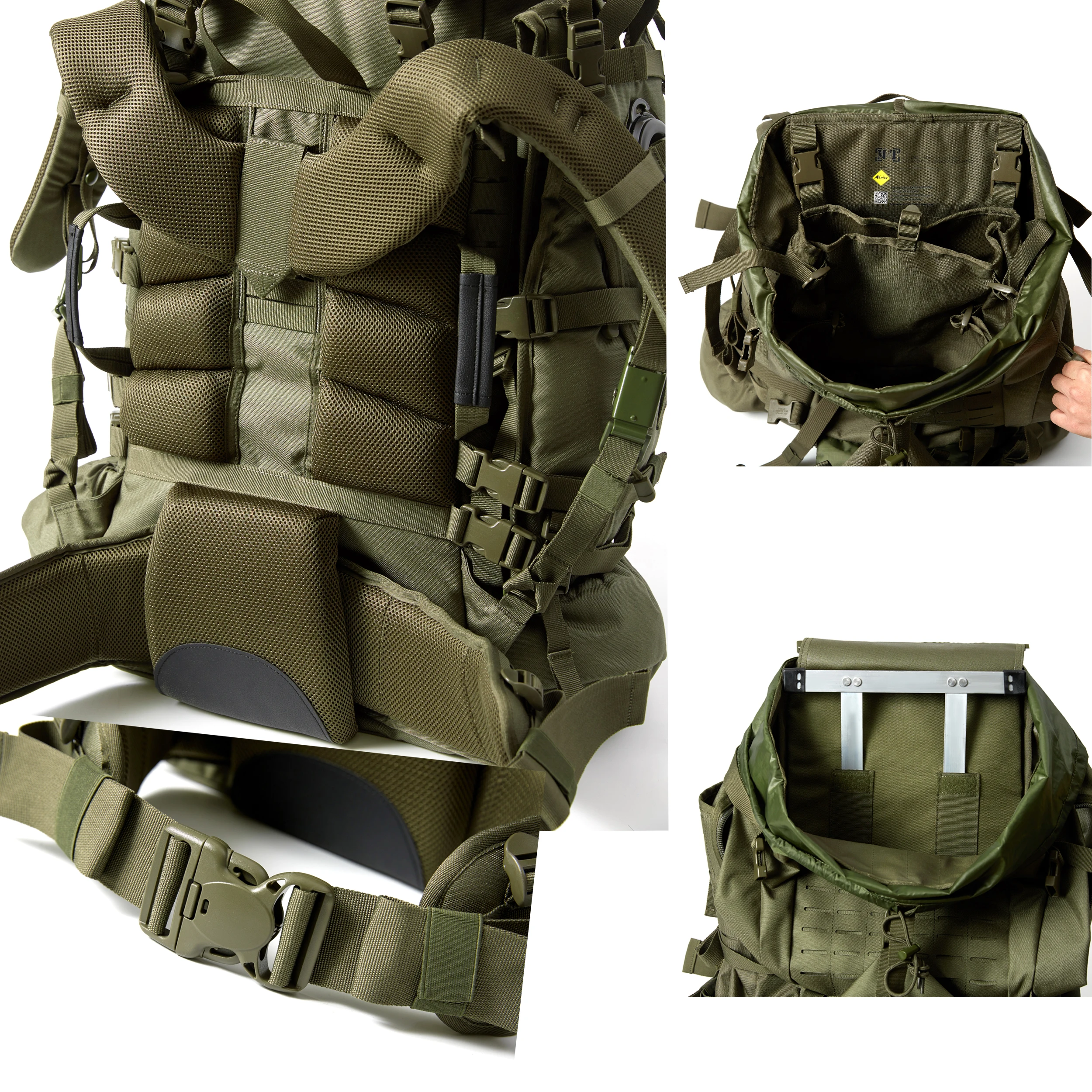 مريحة في الارتداء: مواصفات ميل/شديد التحمل، إطار معدني داخلي، لوحة خلفية للتعليق الهوائي، مع أربع نقاط تعديل على أحزمة الكتف المبطنة ذات الشكل العالي، واحدة على حزام الخصر والصدر، من السهل جدًا ضبطها طريقة ركوب الحقيبة.إطلاق سريع عندما تكون في حالات الطوارئ.