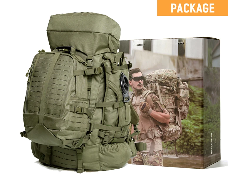 التخزين والحمل: النطاق من 30 لتر/60 لتر/80 لتر/100 لتر.غرفة ضخمة لحمل خيمة لشخصين، سترة مولي، أكياس نوم معيارية، أحذية طويلة، سترات، مستلزمات خارجية وتخييم.جيبان جانبيان يناسبان أعمدة الخيمة أو قضبان الصيد أو بنادق البندقية.الوزن الذاتي: 7.5 رطل، أقصى وزن للحمل يصل إلى 120 رطل.