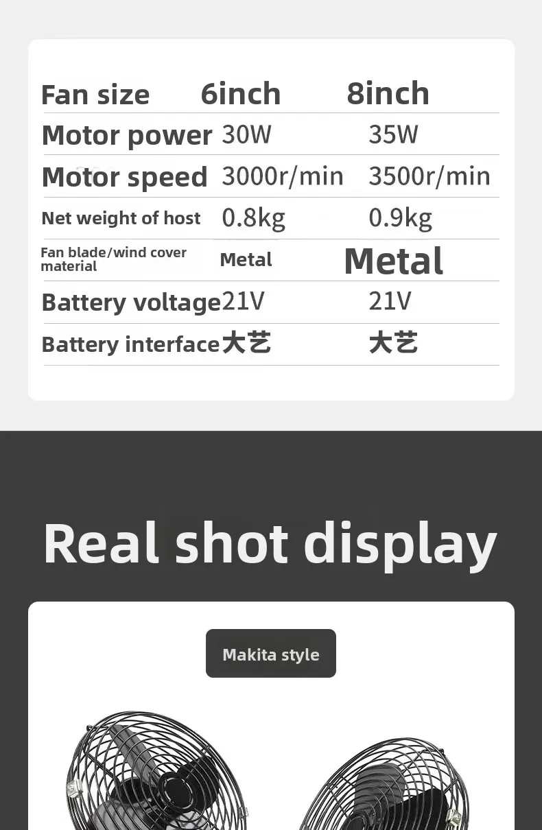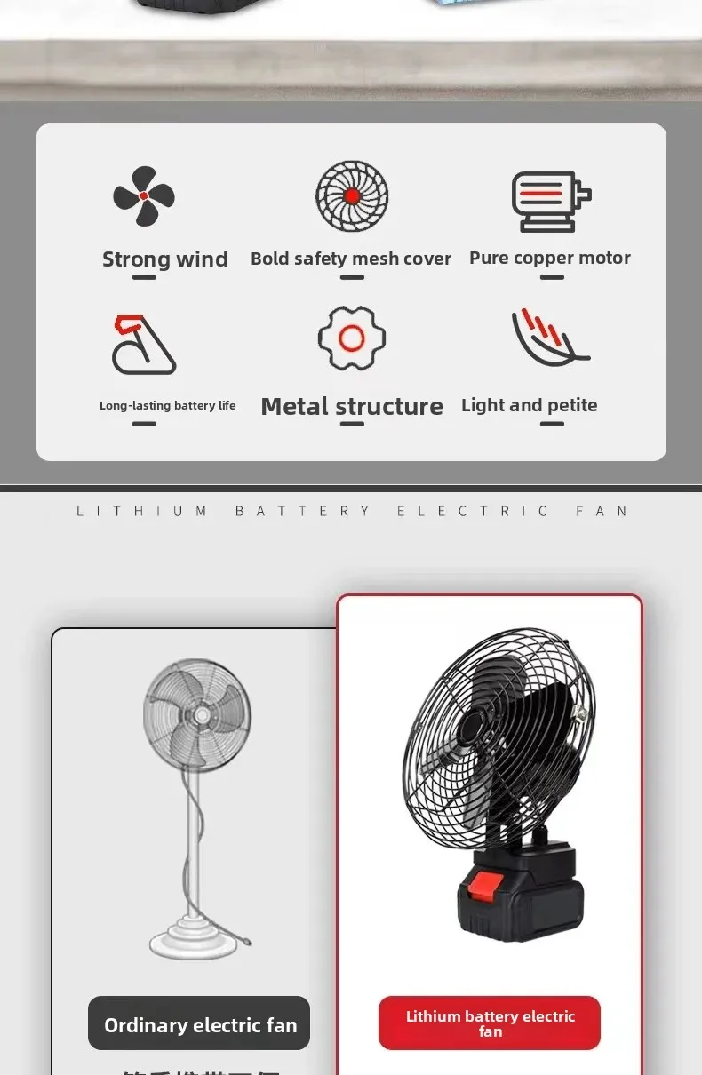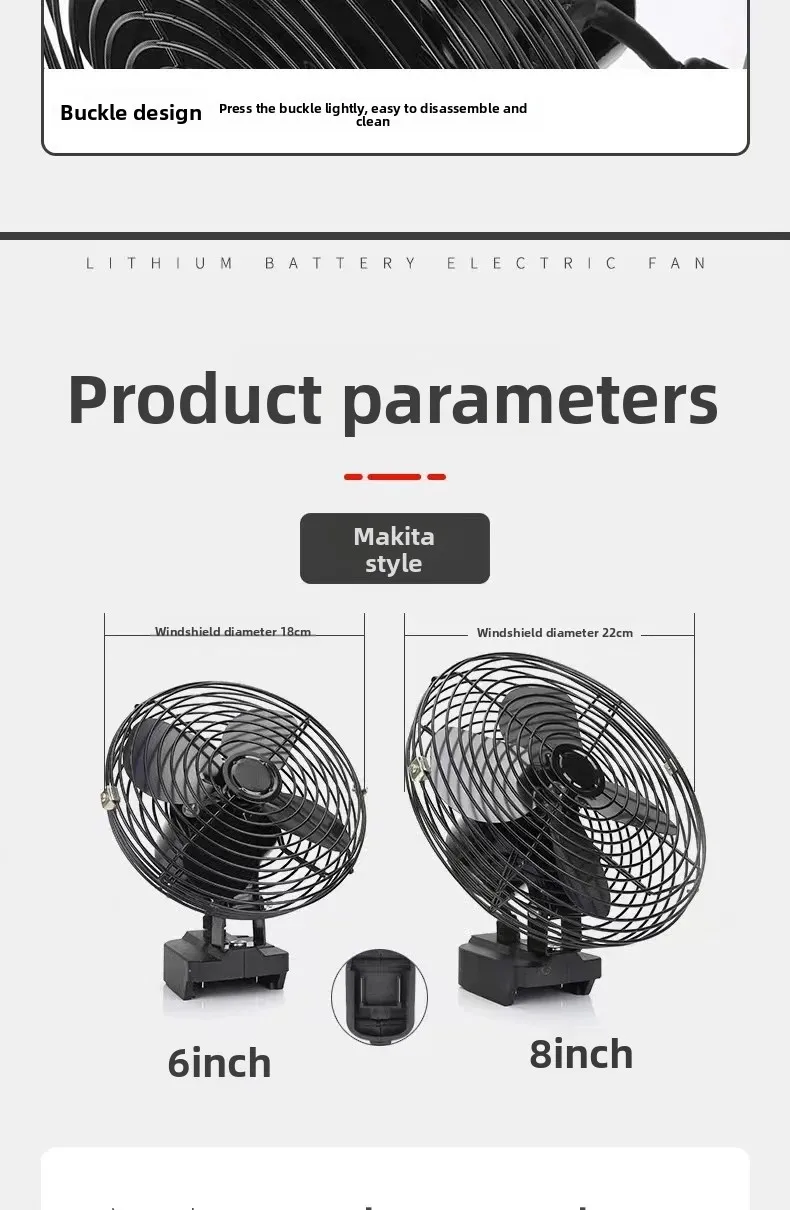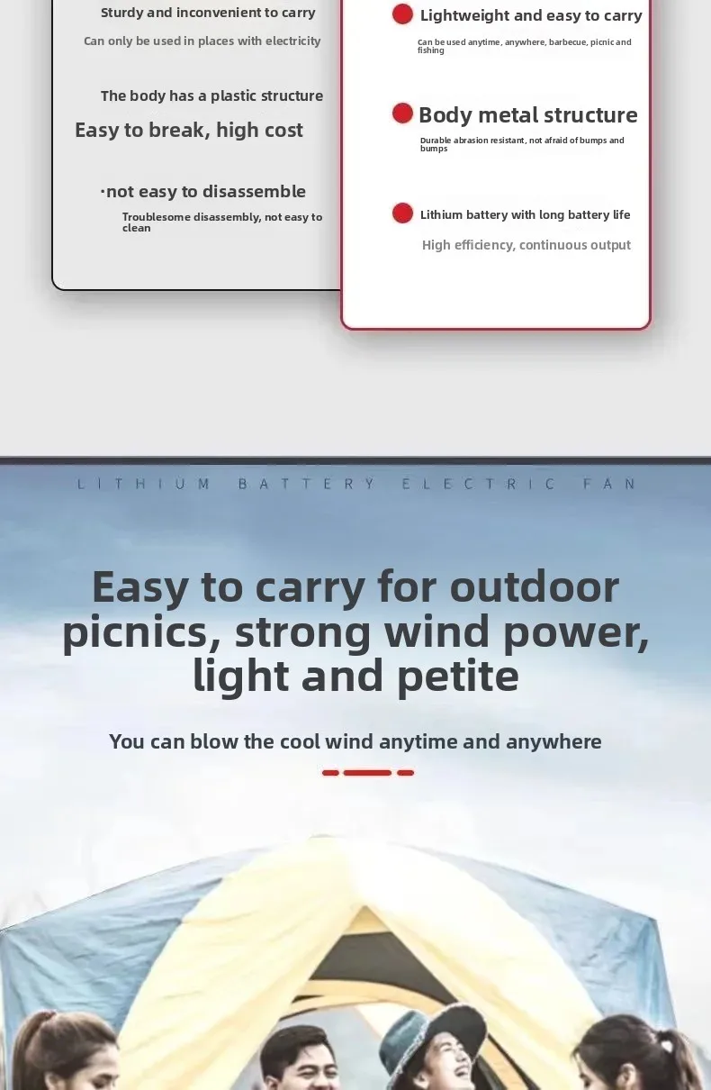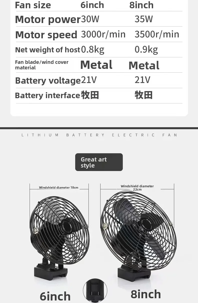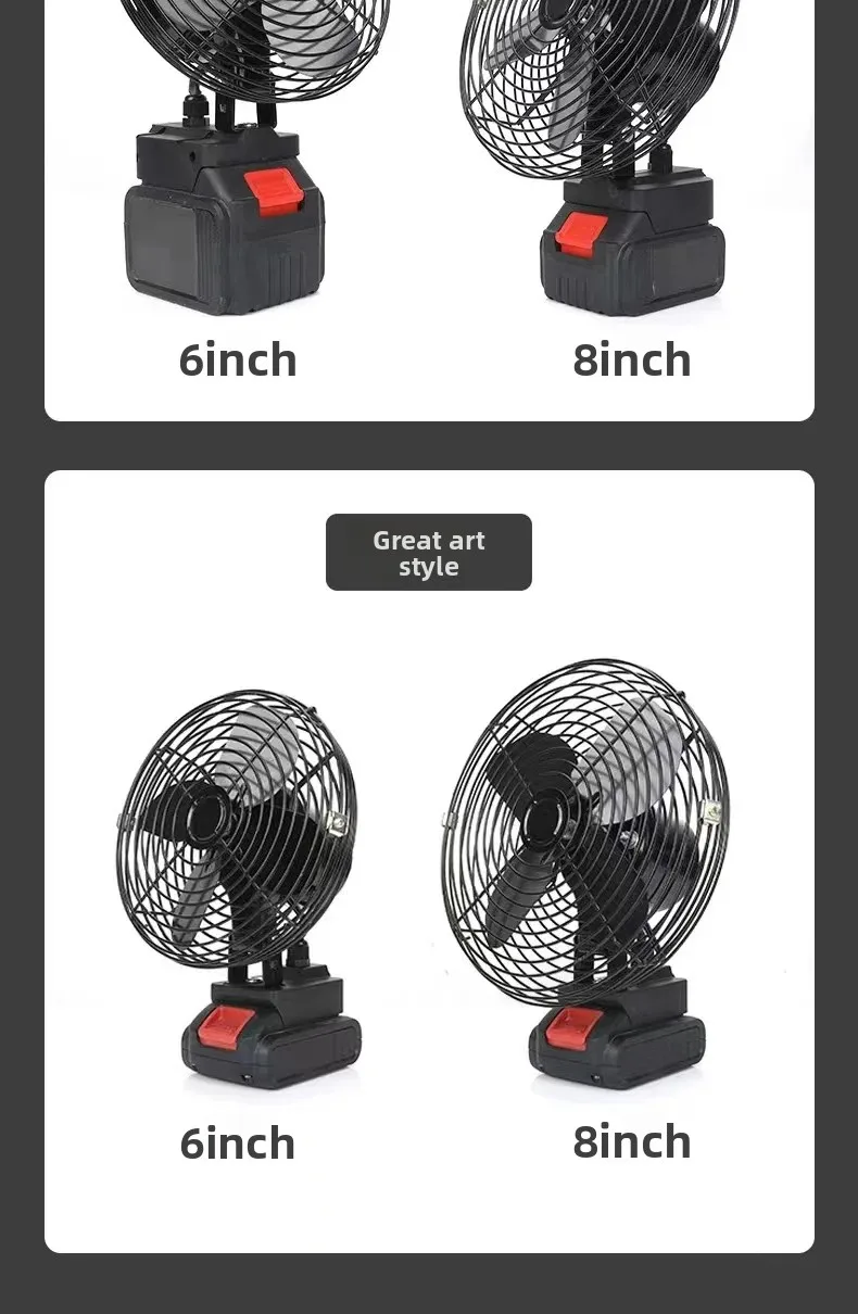 • تصميم لاسلكي قابل للشحن:استمتع بحرية الحركة مع مروحتنا الكهربائية اللاسلكية القابلة لإعادة الشحن، المثالية للتخييم في الهواء الطلق أو الاستخدام المنزلي.