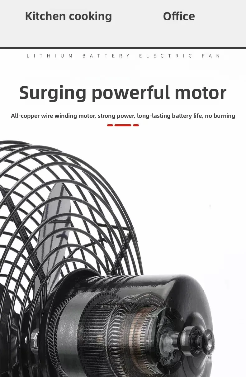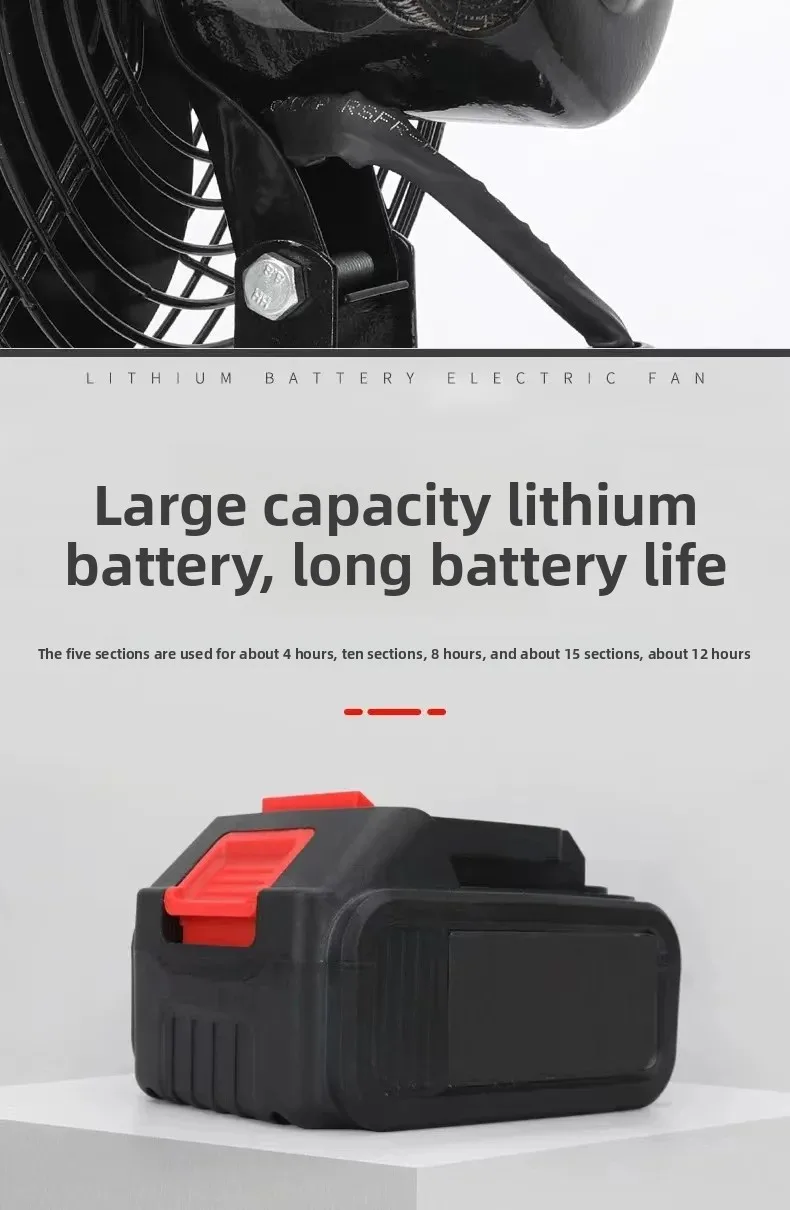 • تعمل ببطارية ليثيوم:تعمل هذه المروحة ببطارية ليثيوم موثوقة، وتضمن أداءً طويل الأمد دون الحاجة إلى الشحن المتكرر.
