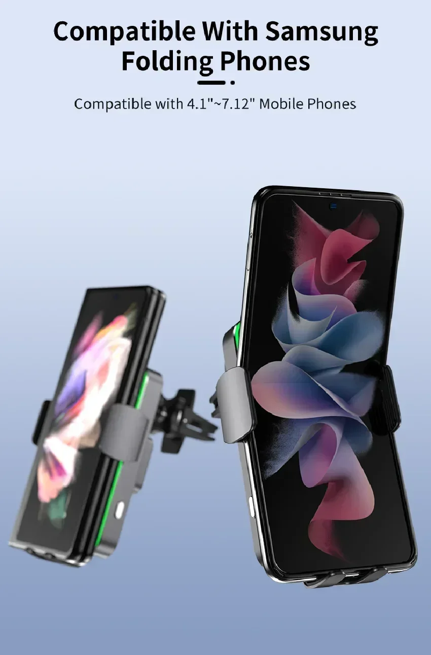 شاحن سيارة لاسلكي لسامسونج جالاكسي زد فليب ، ملف مزدوج ، مشبك تلقائي ، شحن سريع ، حامل حامل حامل هاتف ، سامسونج جالاكسي زد فليب ، 5 ، 4 ، 3 ، S22 ، آيفون ، 30 واط
