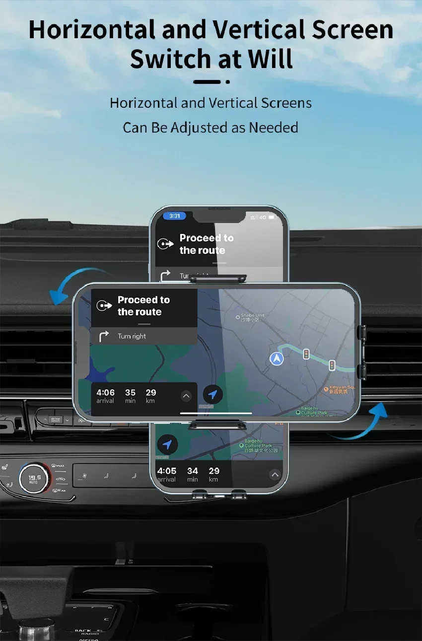 بعد توصيل الكبل ، ضع الهاتف الخلوي في حامل شاحن السيارة اللاسلكي الذي سيتم تثبيته تلقائيًا وبدء الشحن التلقائي (يدعم!!!!! المس الأزرار الجانبية 2 للسيارة اللاسلكية شاحن اي فون حامل يمكن جعل الذراع مفتوحة. كما أنها تدعم الدوران ° ، وهو مناسب جدًا للقيادة.