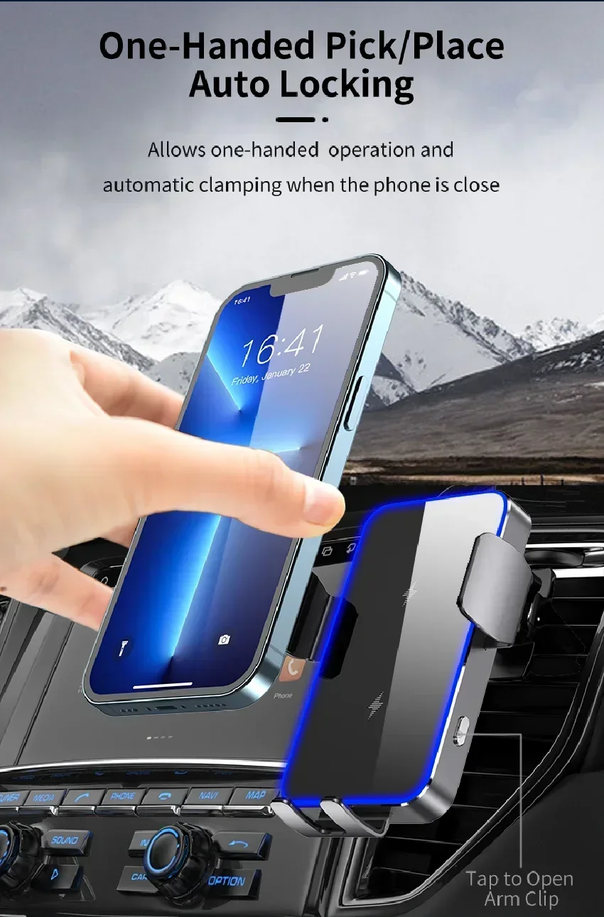 5. حامل هاتف السيارة الأكثر ملاءمة يدعم الشحن اللاسلكي السريع 15 واط ، لا تقلق بشأن هاتفك من البطارية المنخفضة.