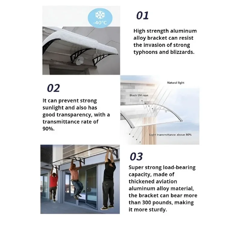 اسم المنتج: مظلة ومظلة من البولي كربونات، باب خيمة خارجي من البولي كربونات، مظلة للفناء، مظلات، مظلة باب خارجي، مظلة للشمس